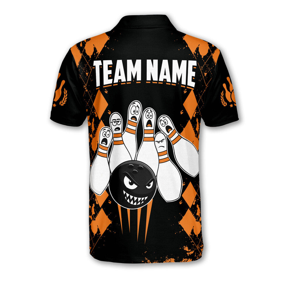Black And Orange Custom Angry Ball Screaming Pins Bowling Men Polo Shirts, Custom Funny Bowling Team Shirts BM0341