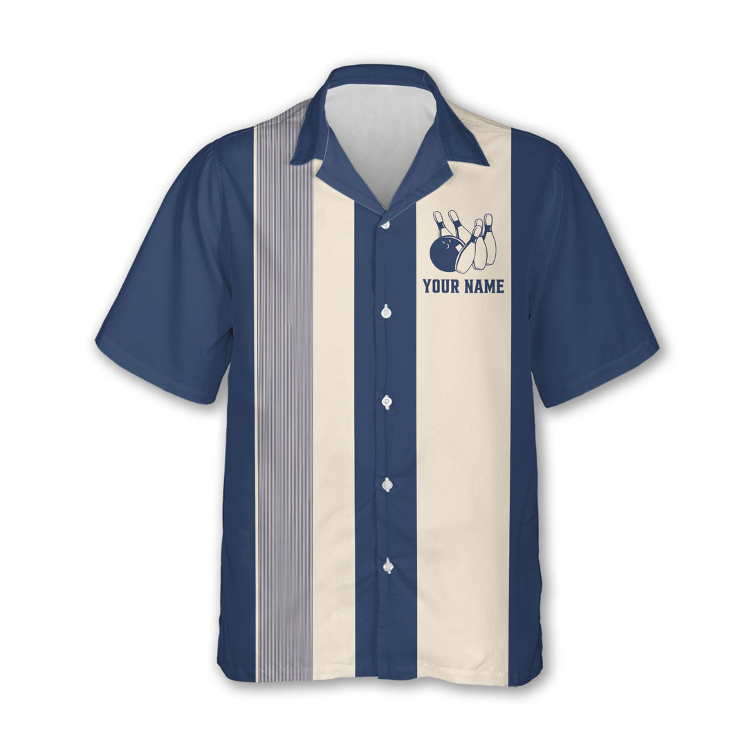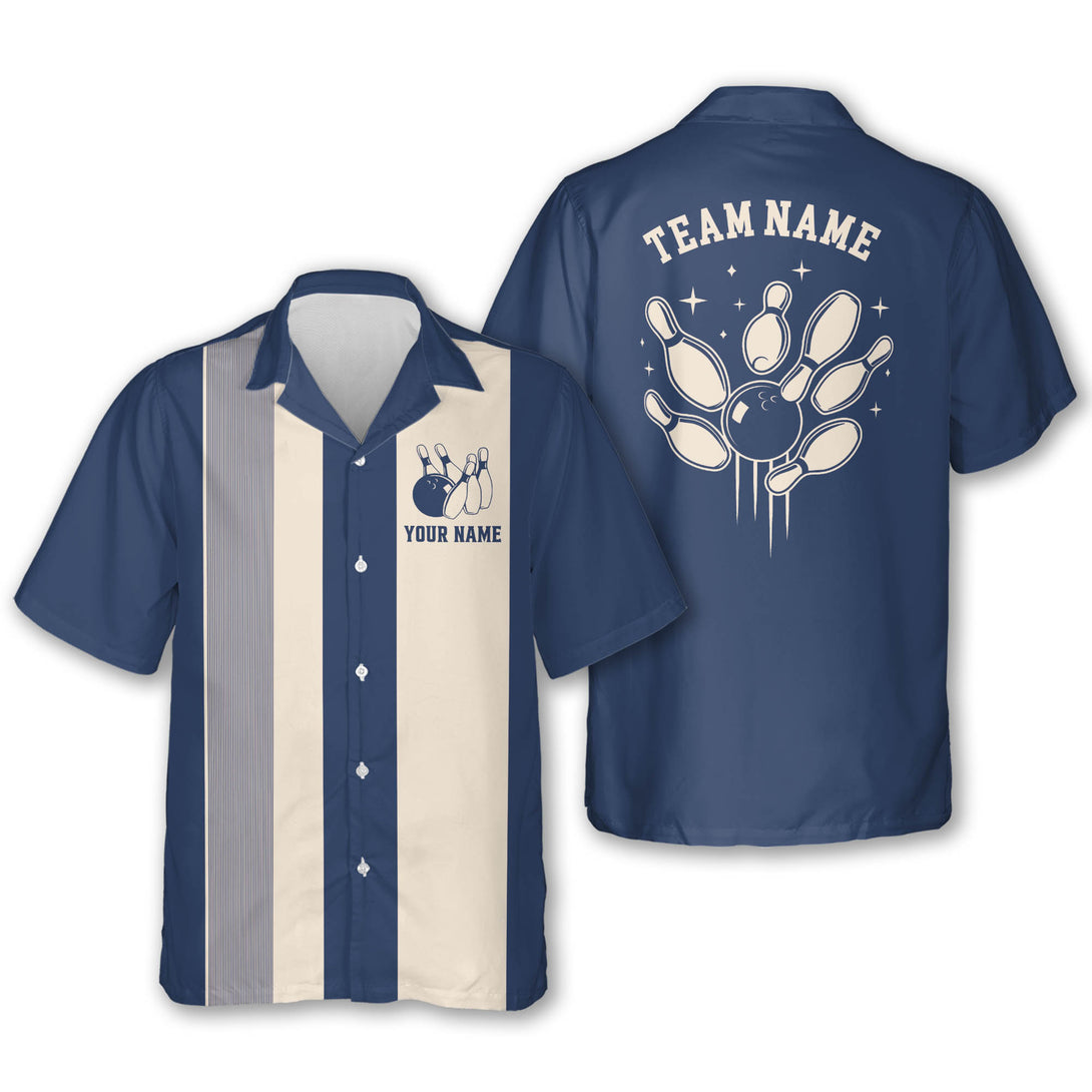 Custom Navy Blue Vintage Hawaiian Bowling Shirts Mens, Custom Vintage Bowling Team Shirts BE0067