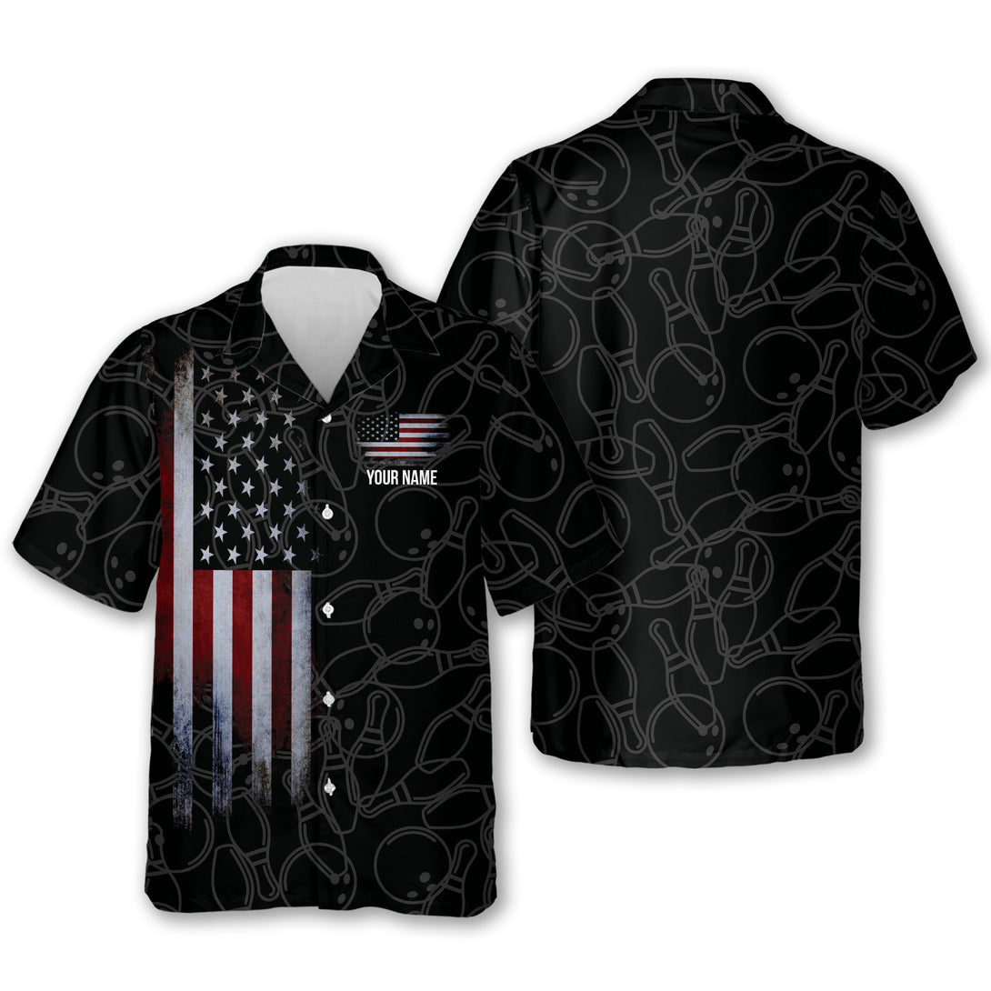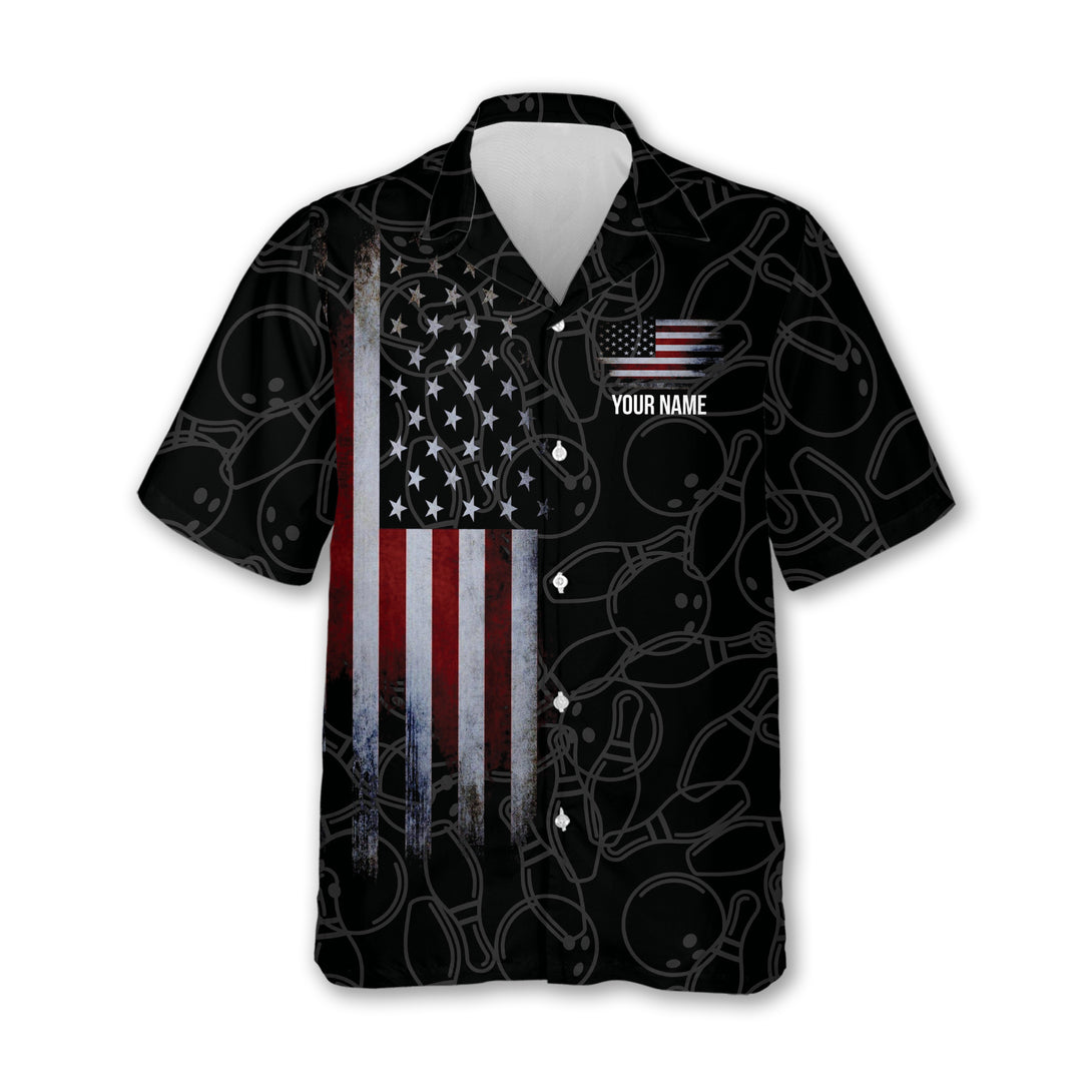 Custom American Flag Bowling Hawaiian Shirts For Men, Custom Hawaiian 4th Of July Bowling Shirt, Custom Stars And Stripes Bowling Shirt HB0181