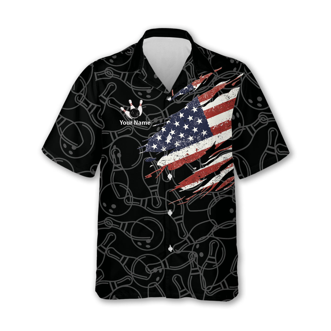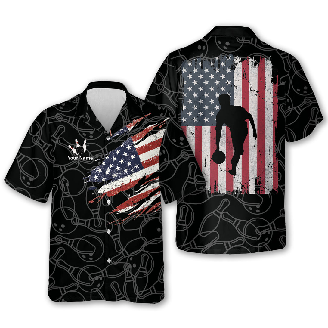 Custom American Flag Bowling Hawaiian Shirts For Men, Custom Patriotic Bowling Shirts HB0182