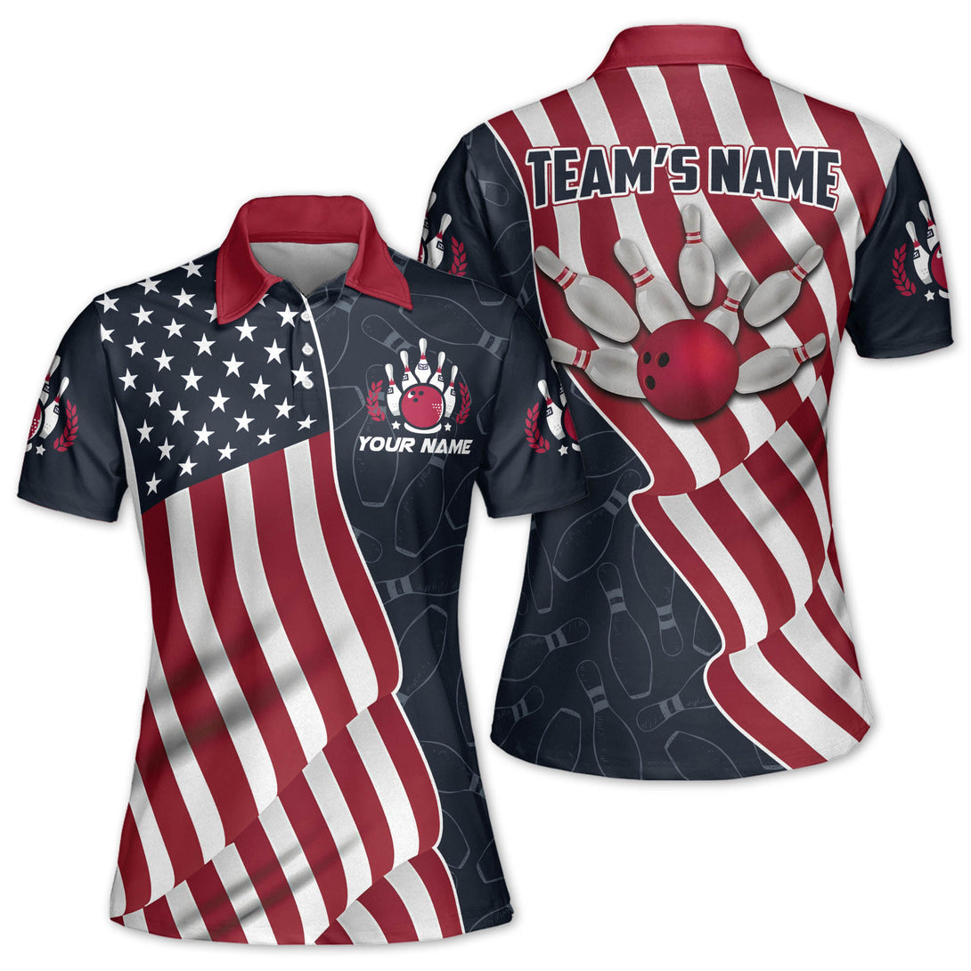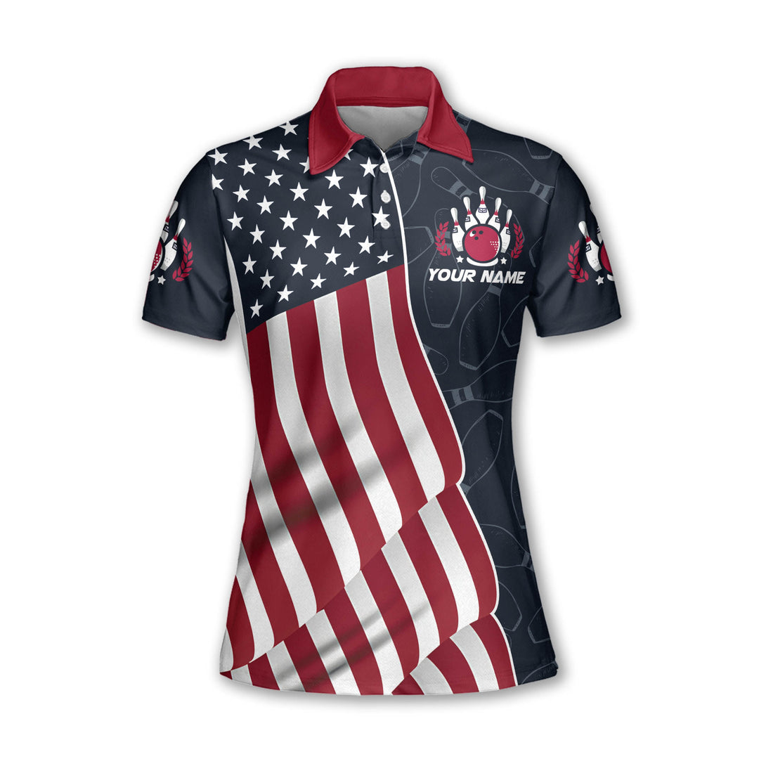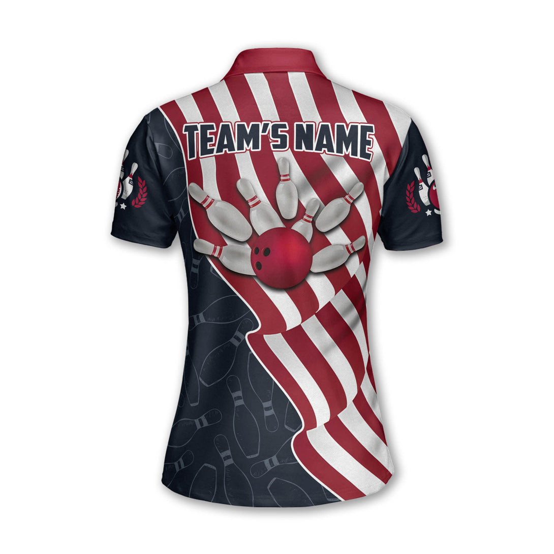 Custom American Flag Bowling Polo Shirt For Women, Custom Women's Patriotic Bowling Team Shirts BZ0051