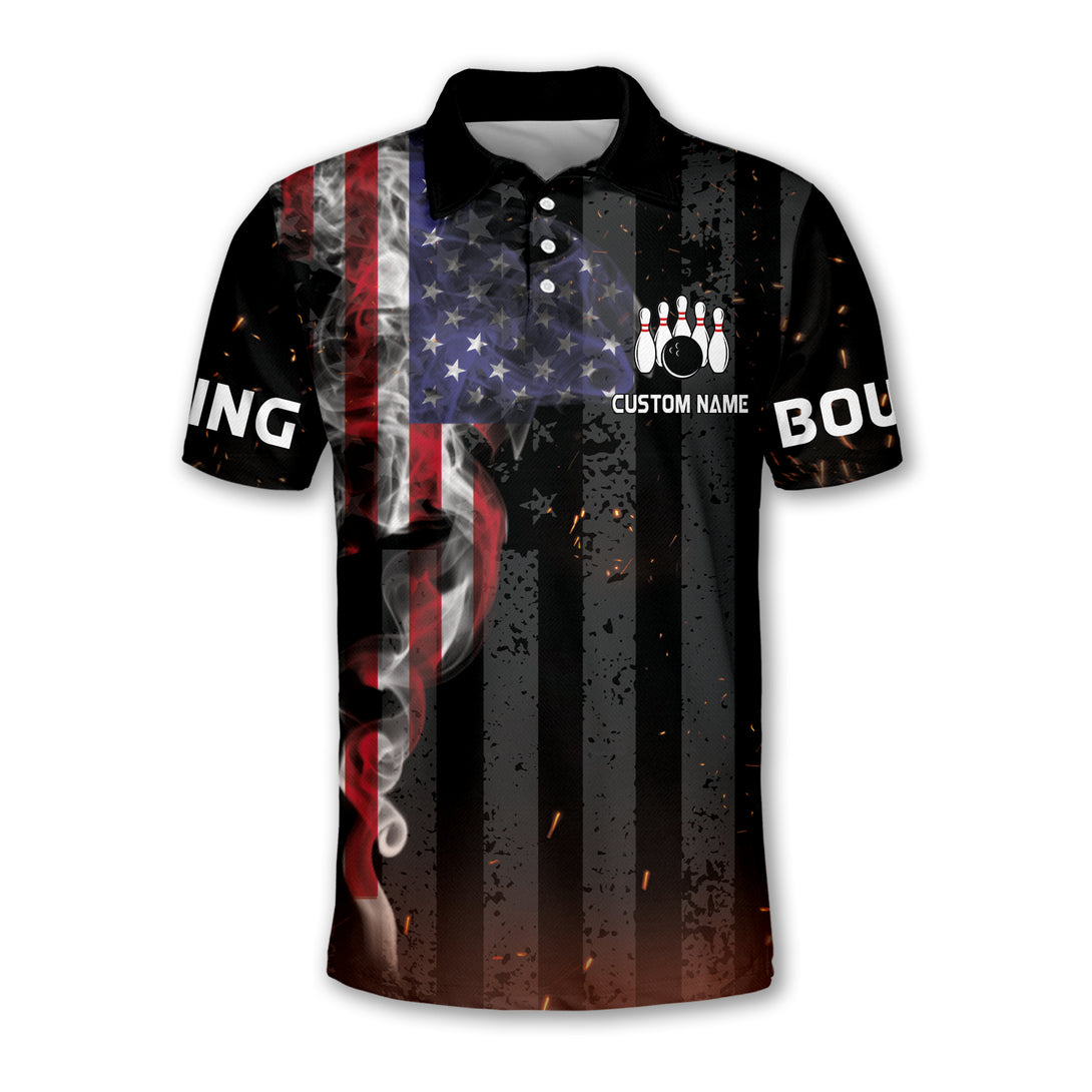 Custom American Flag Bowling Polo Shirts For Men, Custom 4th Of July Bowling Team Shirts BZ0237