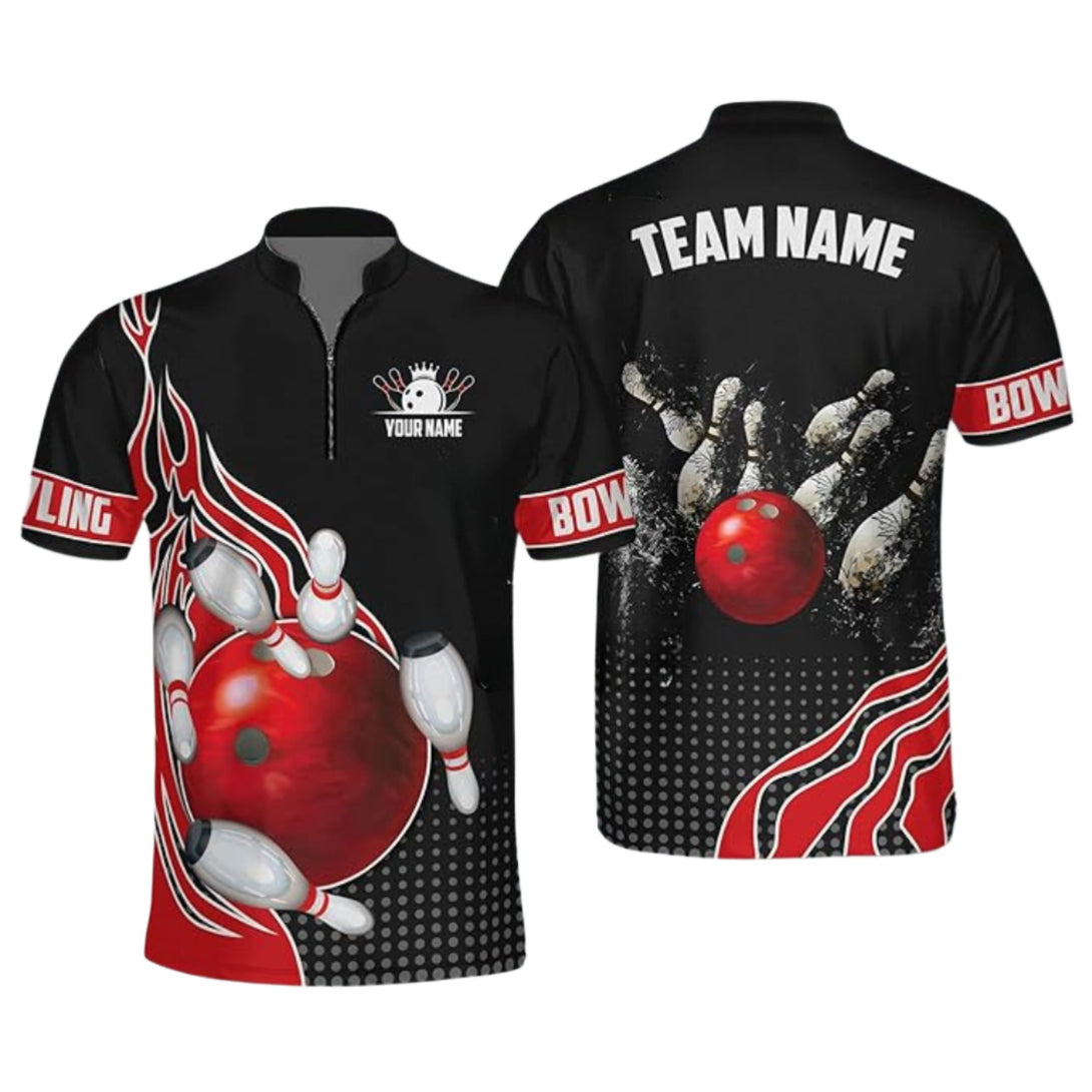 Custom Red Flame Bowling Jersey Shirt For Men, Custom Team Flame Bowling Shirt BM0289
