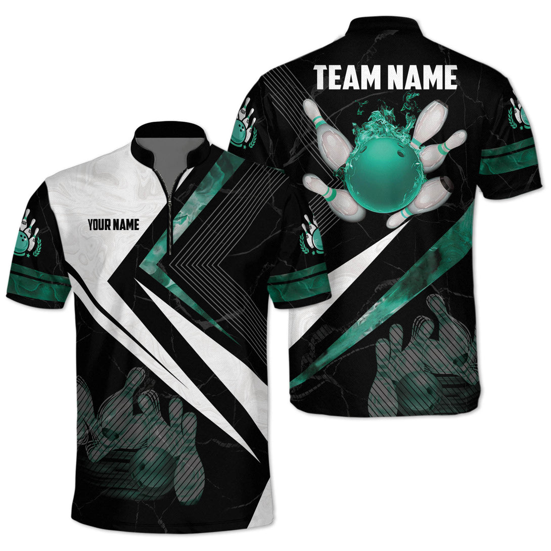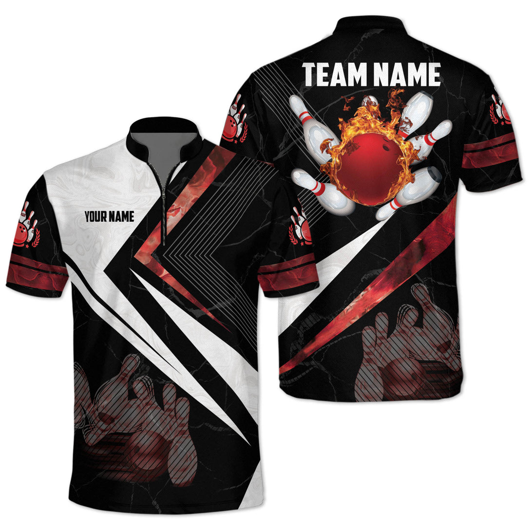 Custom Black And Red Flame Ball Bowling Jersey Shirt For Men, Custom Bowling Team Shirts BZ0087