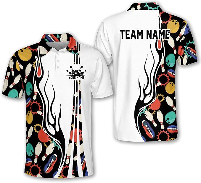 Custom Black And White Team Bowling Polo Shirt For Men, Custom Team Bowling Shirt BM0284