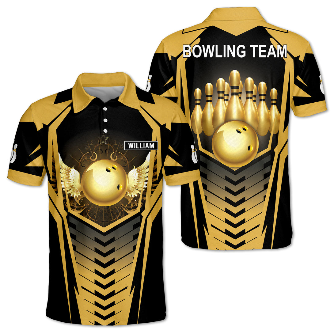 Custom Black And Yellow Team Bowling Polo Shirt For Men, Custom Bowling Team Shirts BZ0166