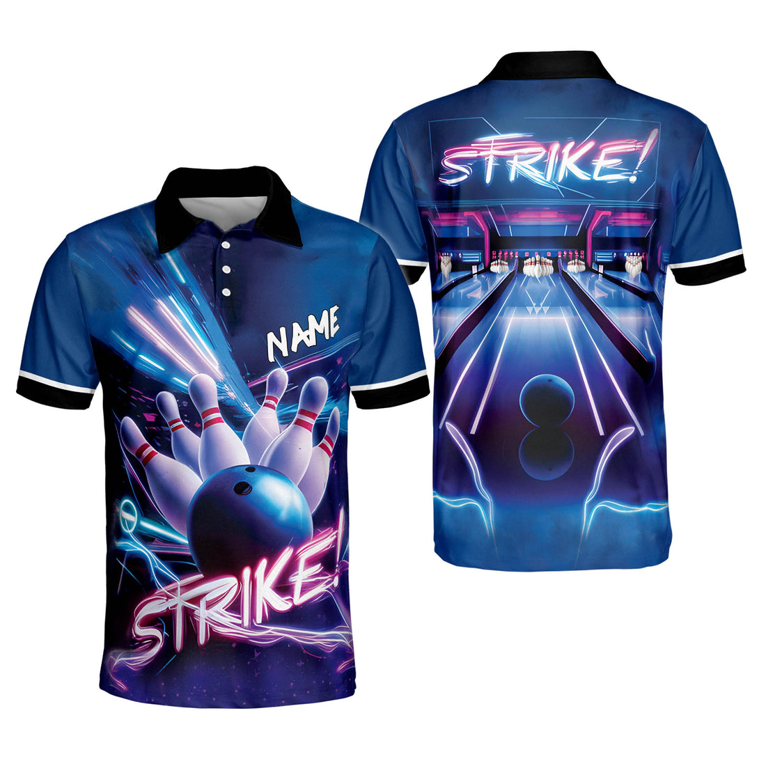 Custom Blue Bowling Polo Shirt For Men, Custom Blue Bowling Shirt BZ0219
