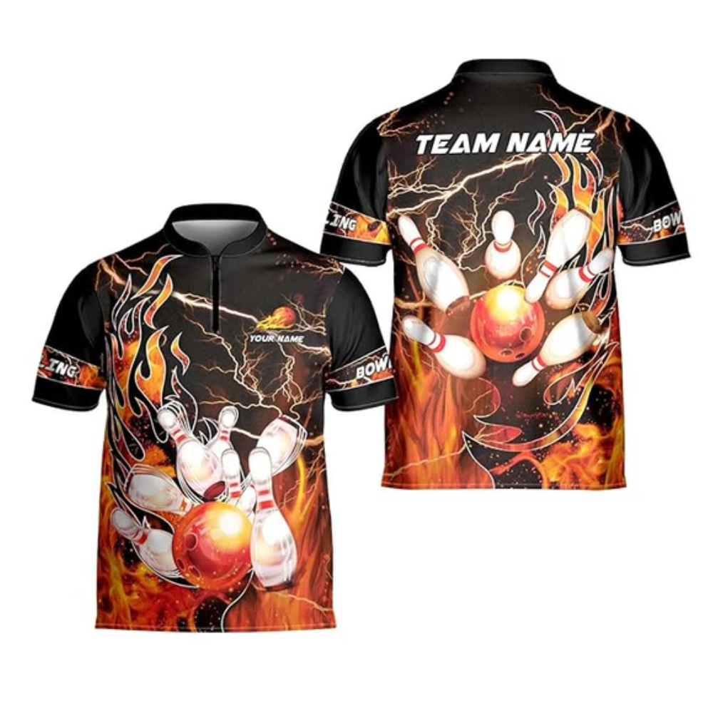Custom Flame Bowling Jersey Shirt For Men, Custom Flame Bowling Team Shirts BZ0127