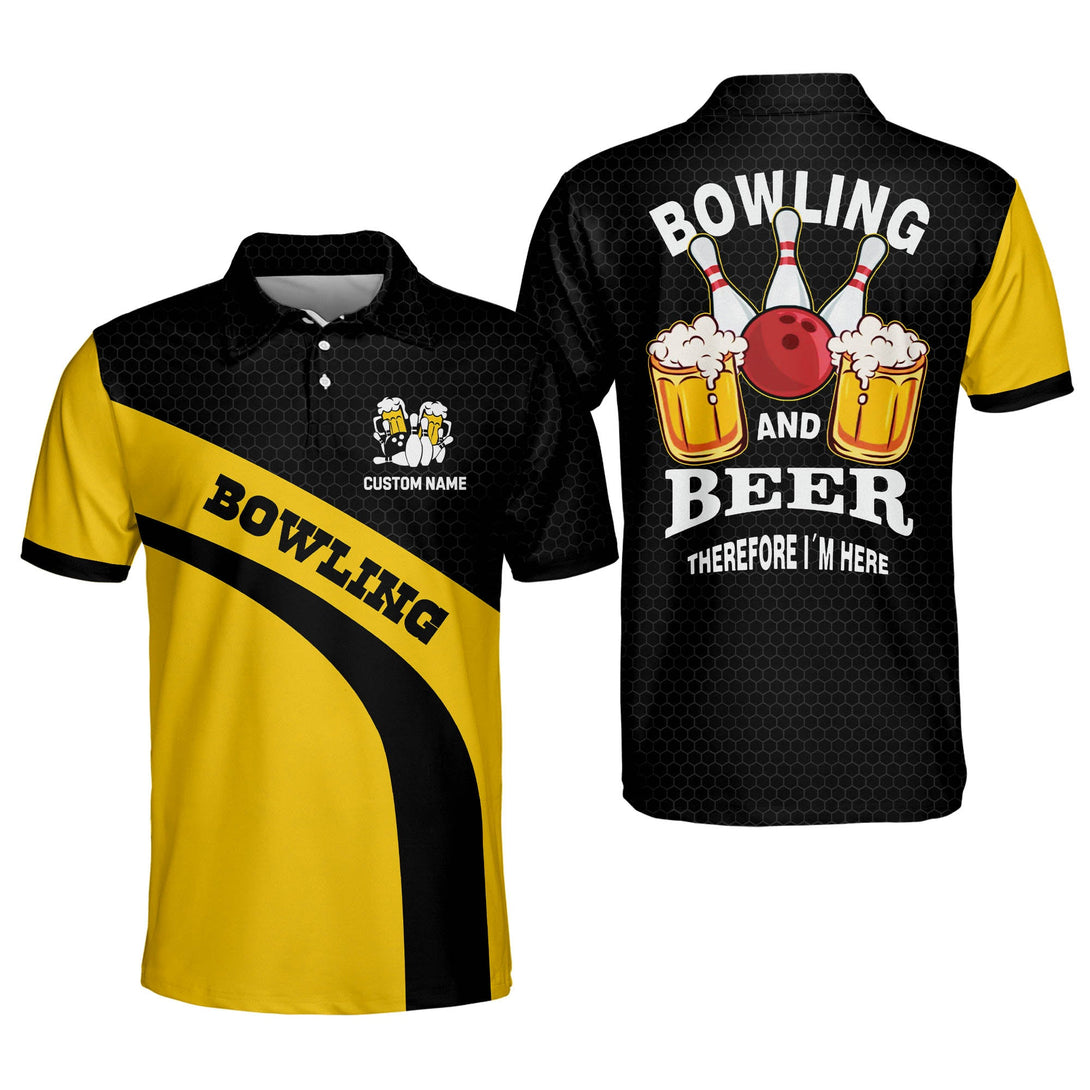 Custom Bowling And Beer Therefore I'm Here Bowling Polo Shirt For Men, Custom Beer Bowling Shirt Funny BM0097