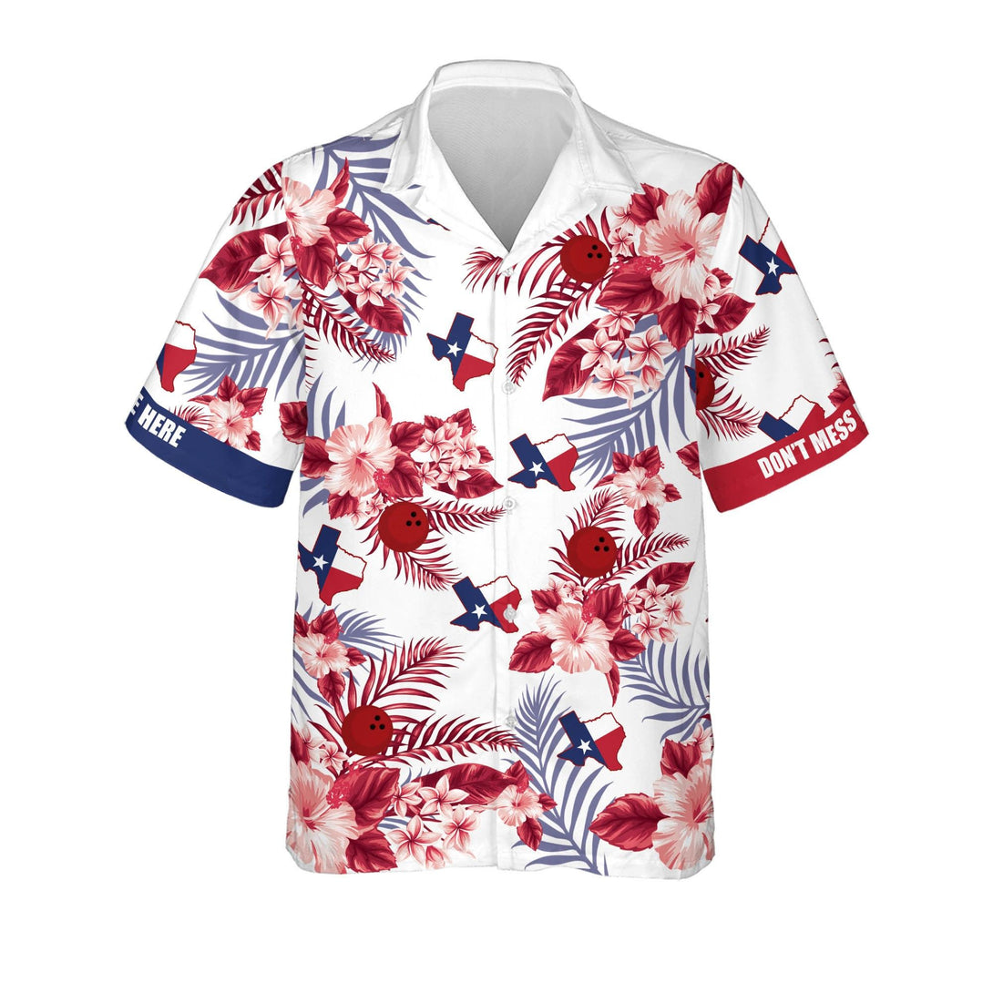 Custom Don't Mess Texas Flag Tropical Bowling Hawaiian Shirt For Men, Custom Texas Flag Bowling Shirts HB0094