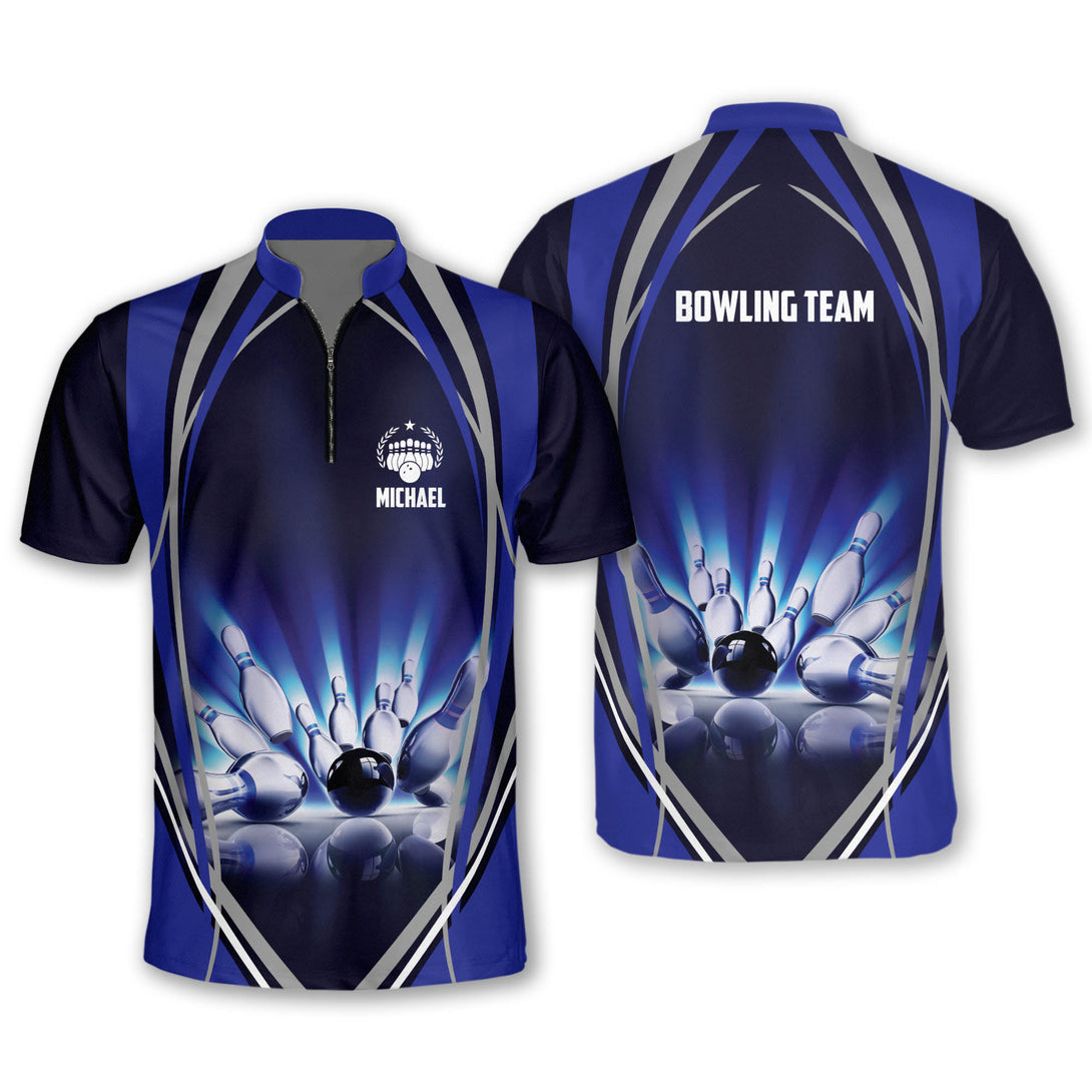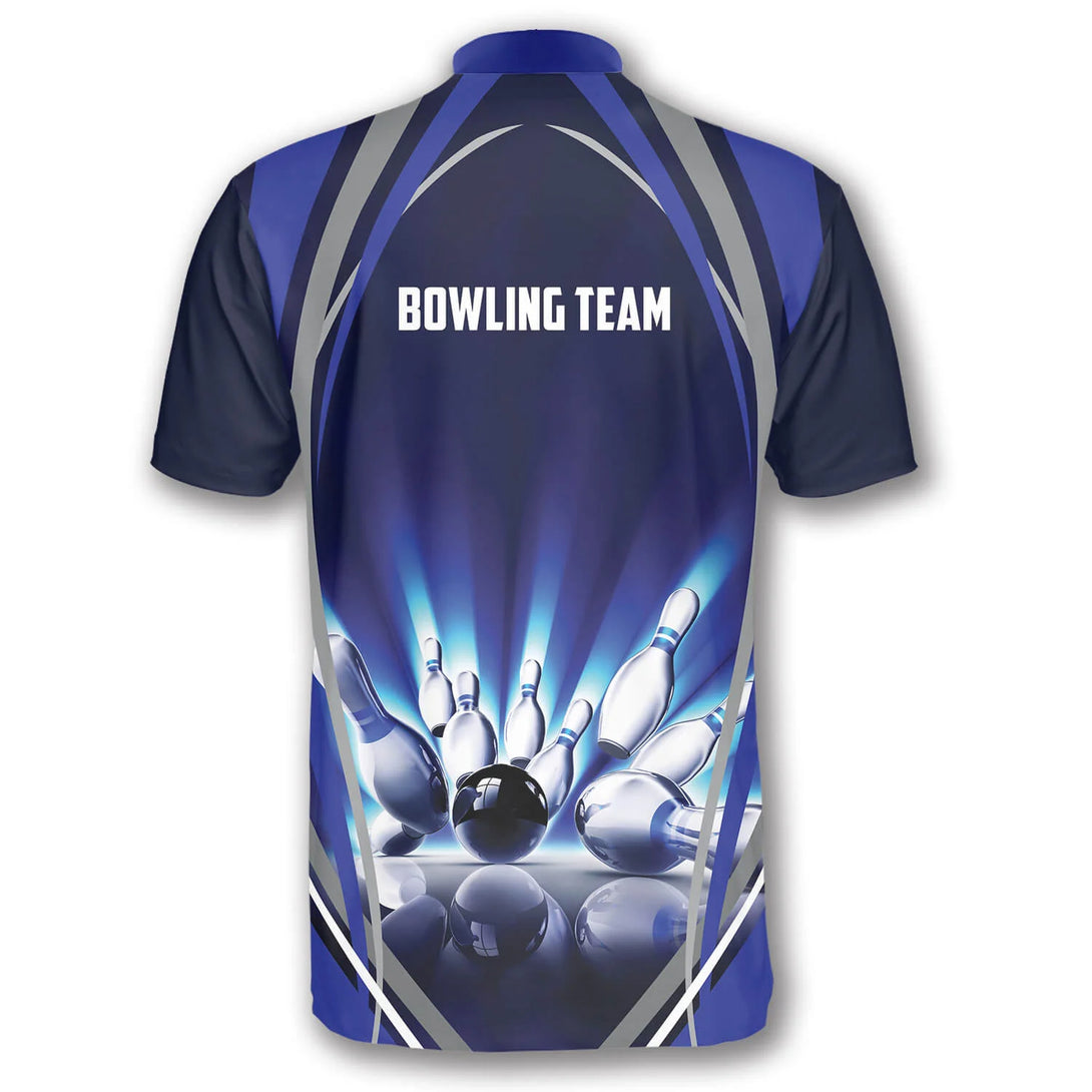 Custom Team Blue Bowling Jerseys Shirt For Men, Custom Bowling Shirt BO0017
