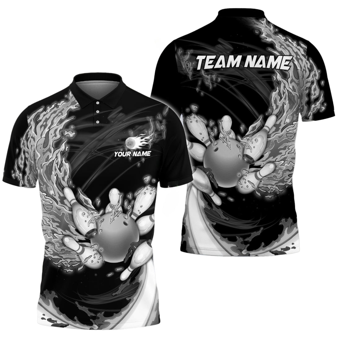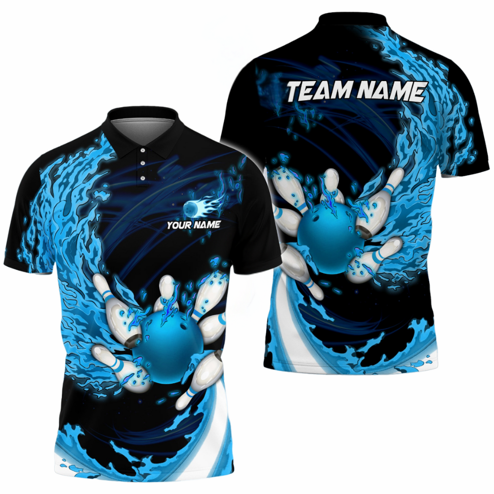 Custom Blue Flame Bowling Polo Shirts For Men, Custom Team Bowling Shirt BO0340