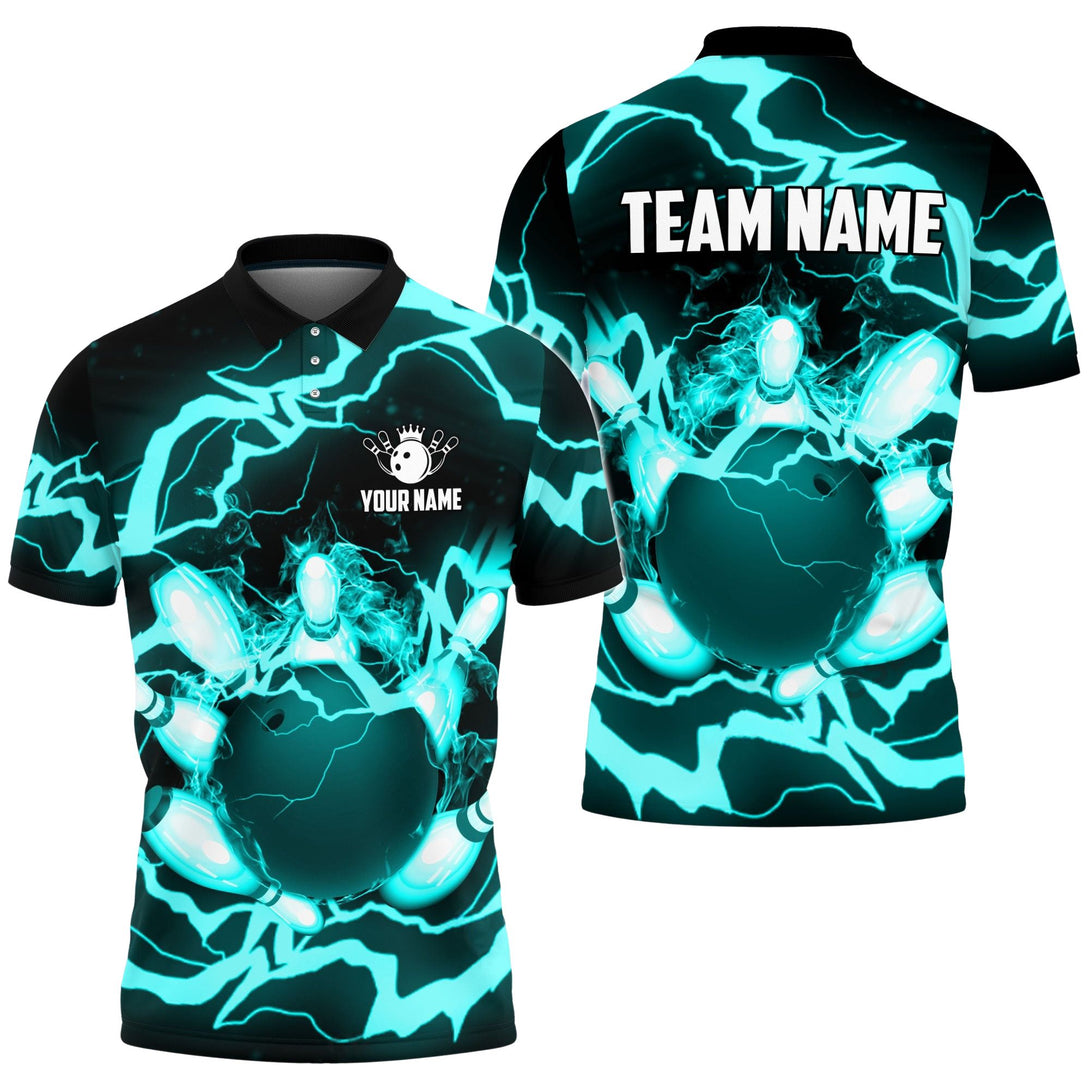 Custom Blue Flame Bowling Polo Shirt For Men, Custom Team Flame Bowling Shirt BO0359