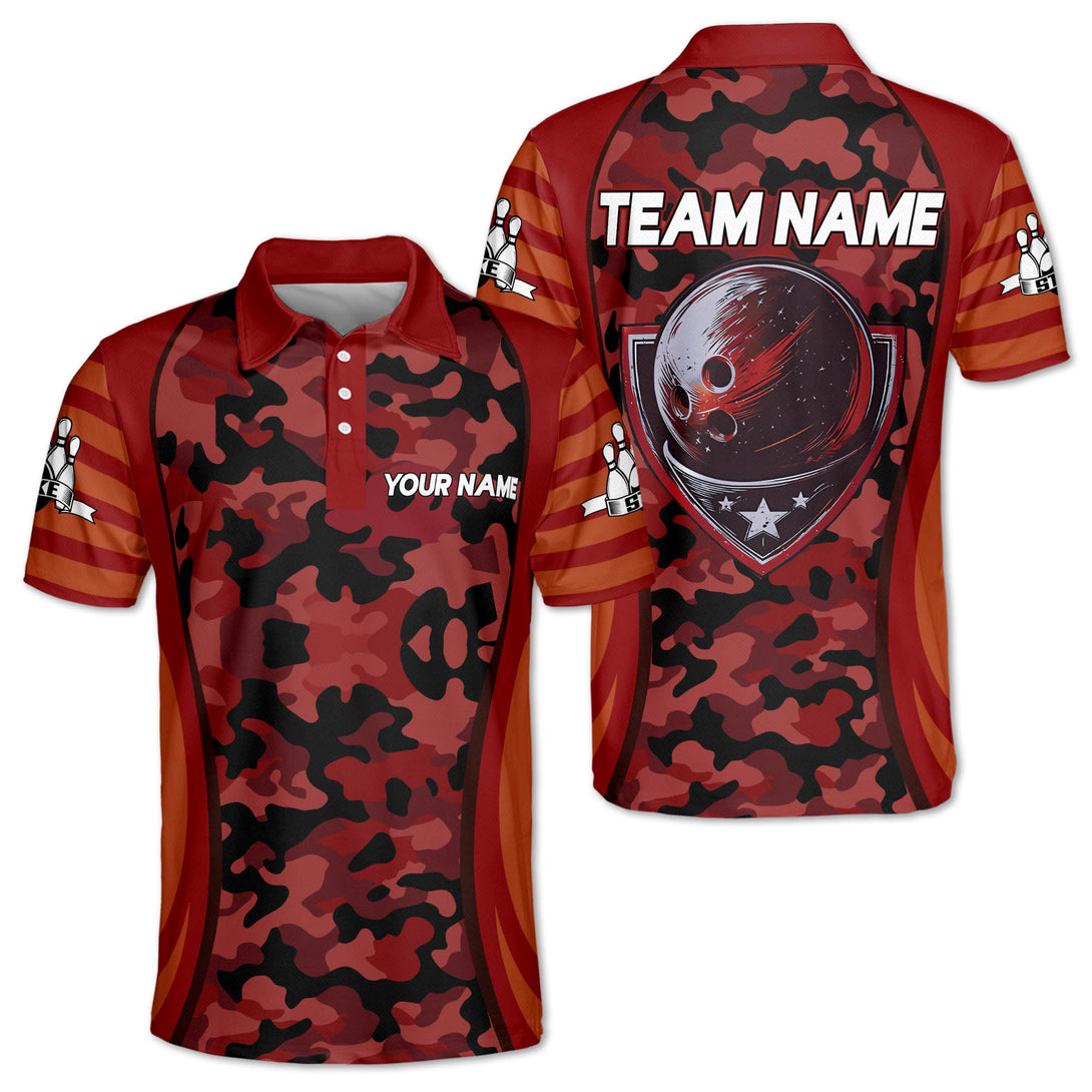 Custom Camo Bowling Polo Shirt For Men, Custom Bowling Team Shirts BM0309