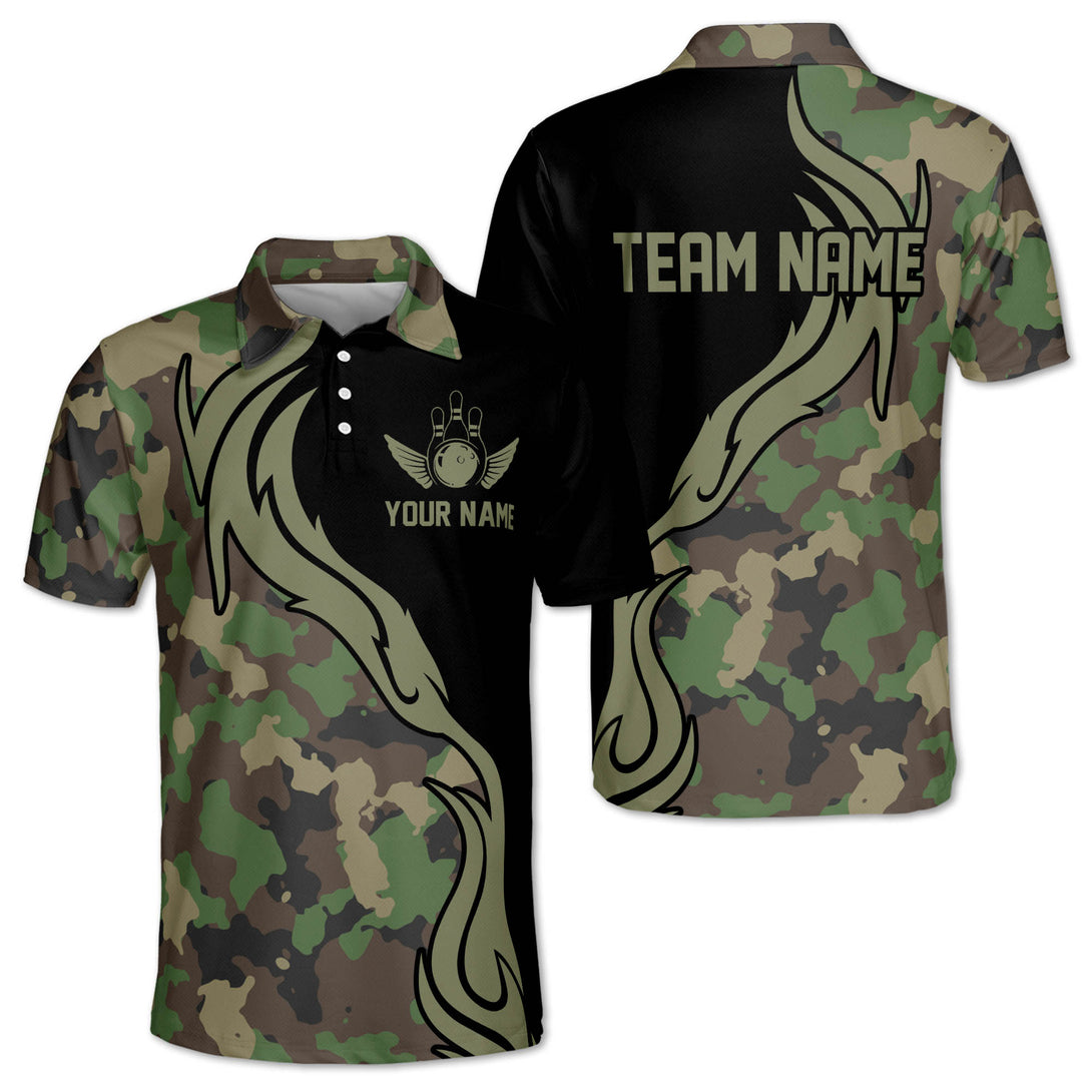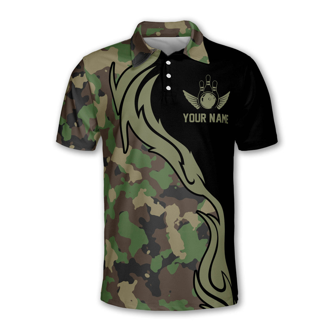 Custom Camo Bowling Polo Shirt For Men, Custom Camouflage Bowling Team Shirts BM0334