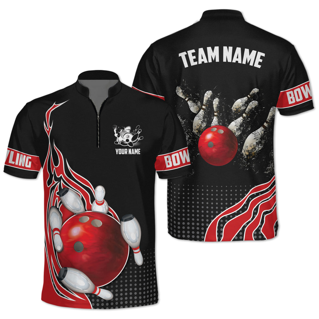 Custom Red Flame Bowling Jersey Shirt For Men, Custom Team Flame Bowling Shirt BO0239