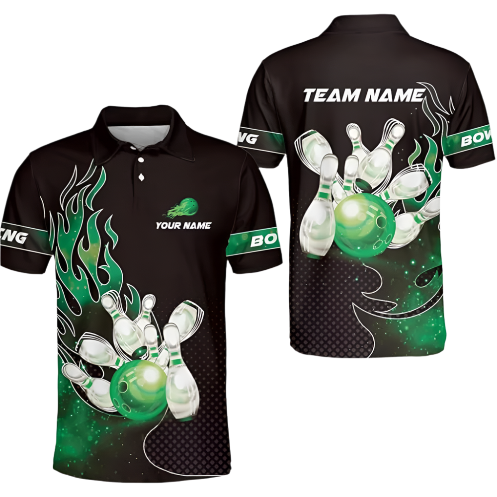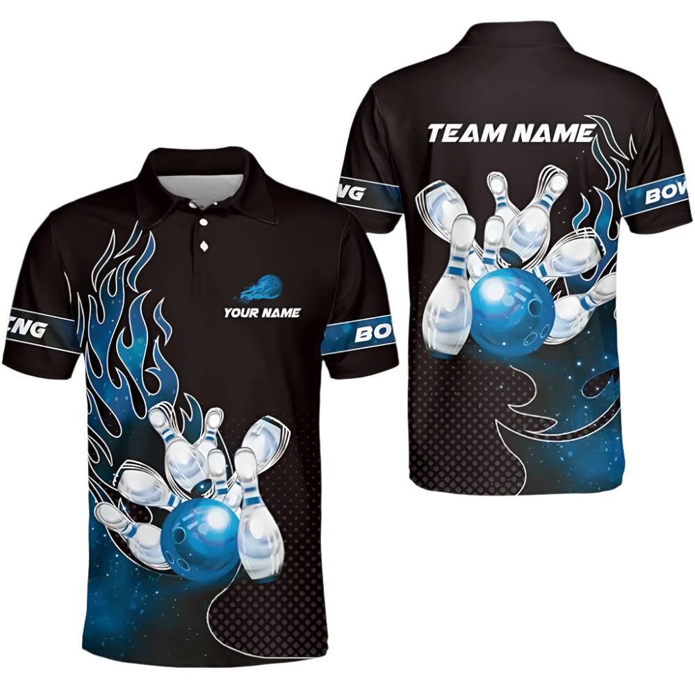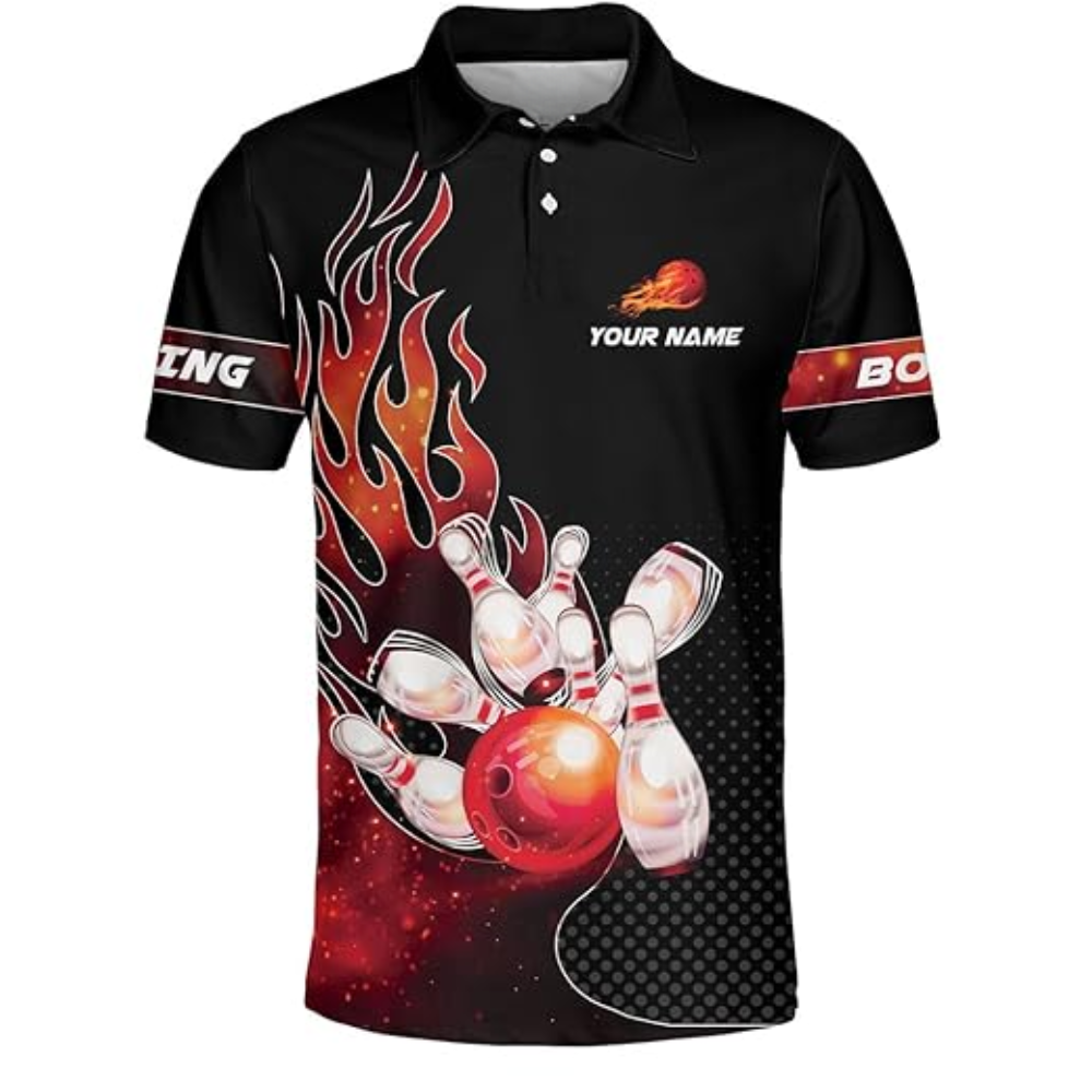 Custom Flame Bowling Polo Shirt For Men, Custom Bowling Team Shirts BZ0177
