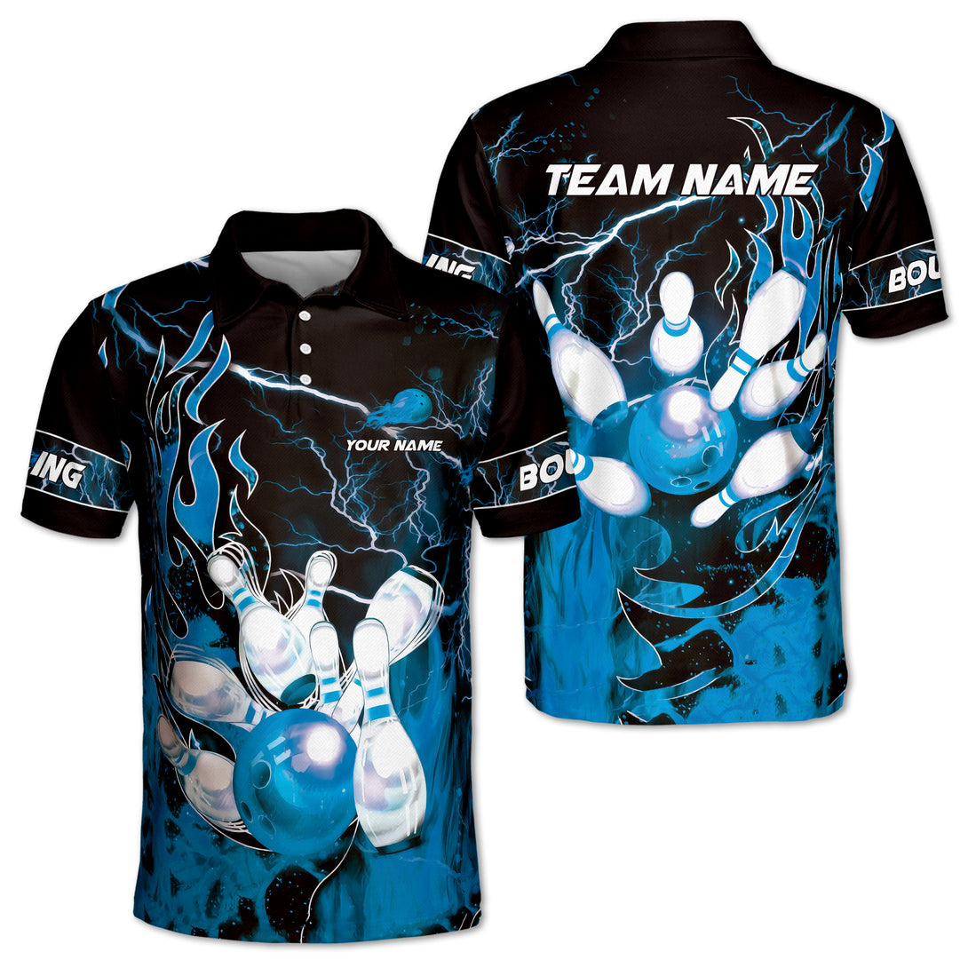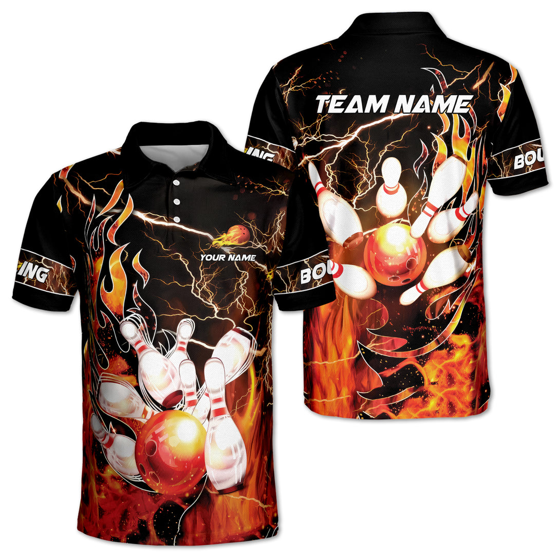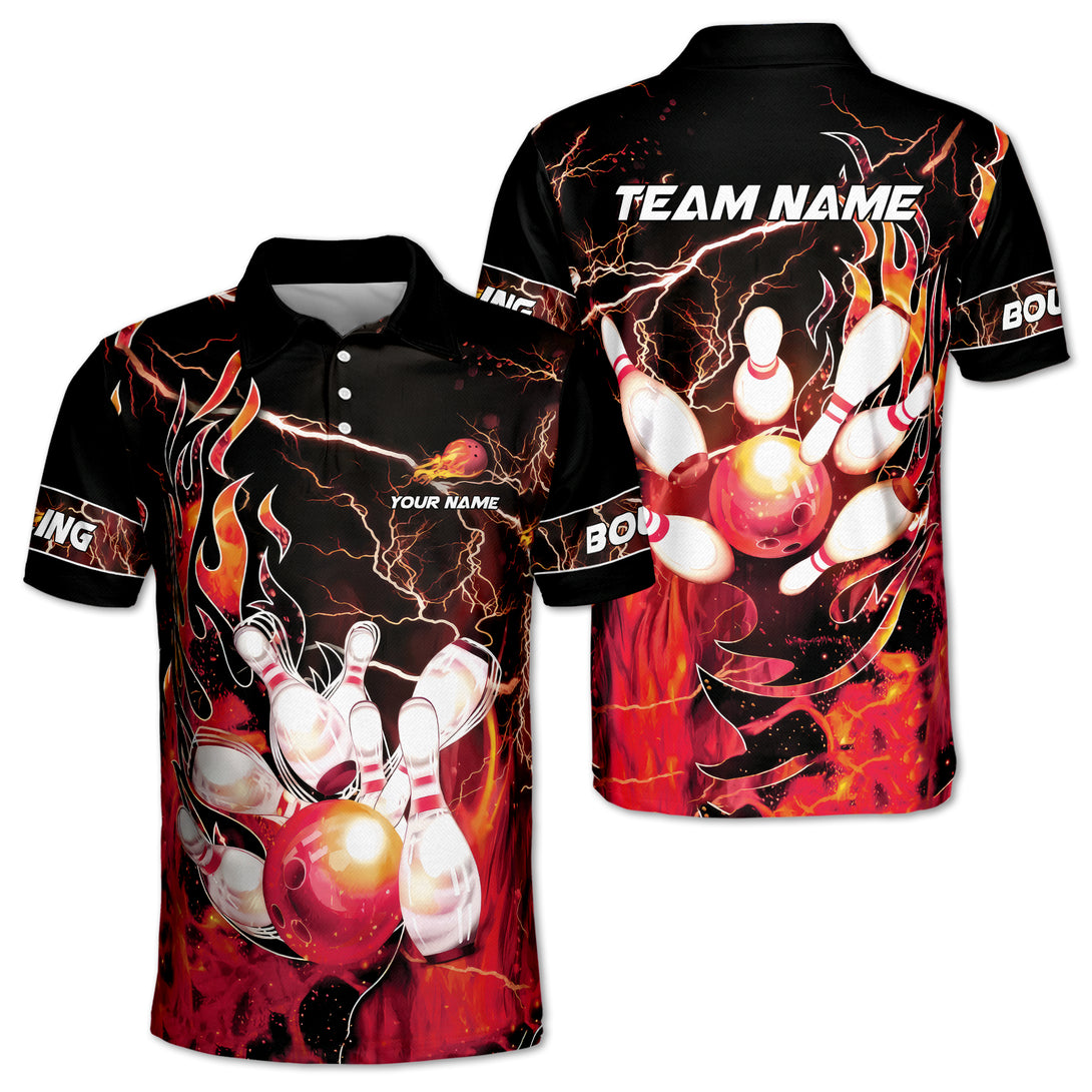 Custom Flame Bowling Polo Shirt For Men, Custom Bowling Team Shirts BZ0178