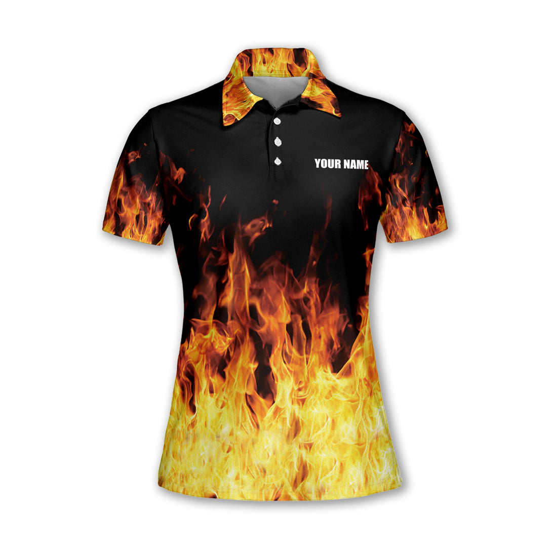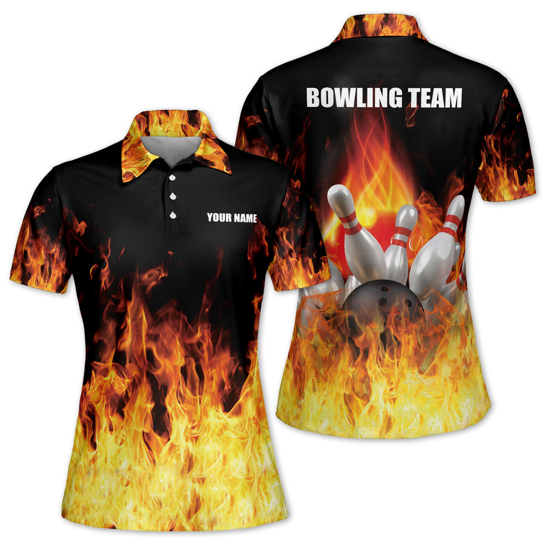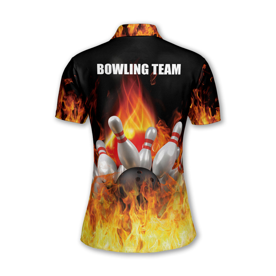 Custom Flame Bowling Shirt Womens, Custom Flame Bowling Polo Shirt For Women BW0121