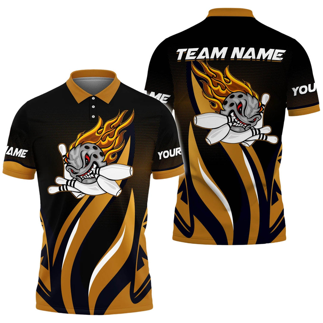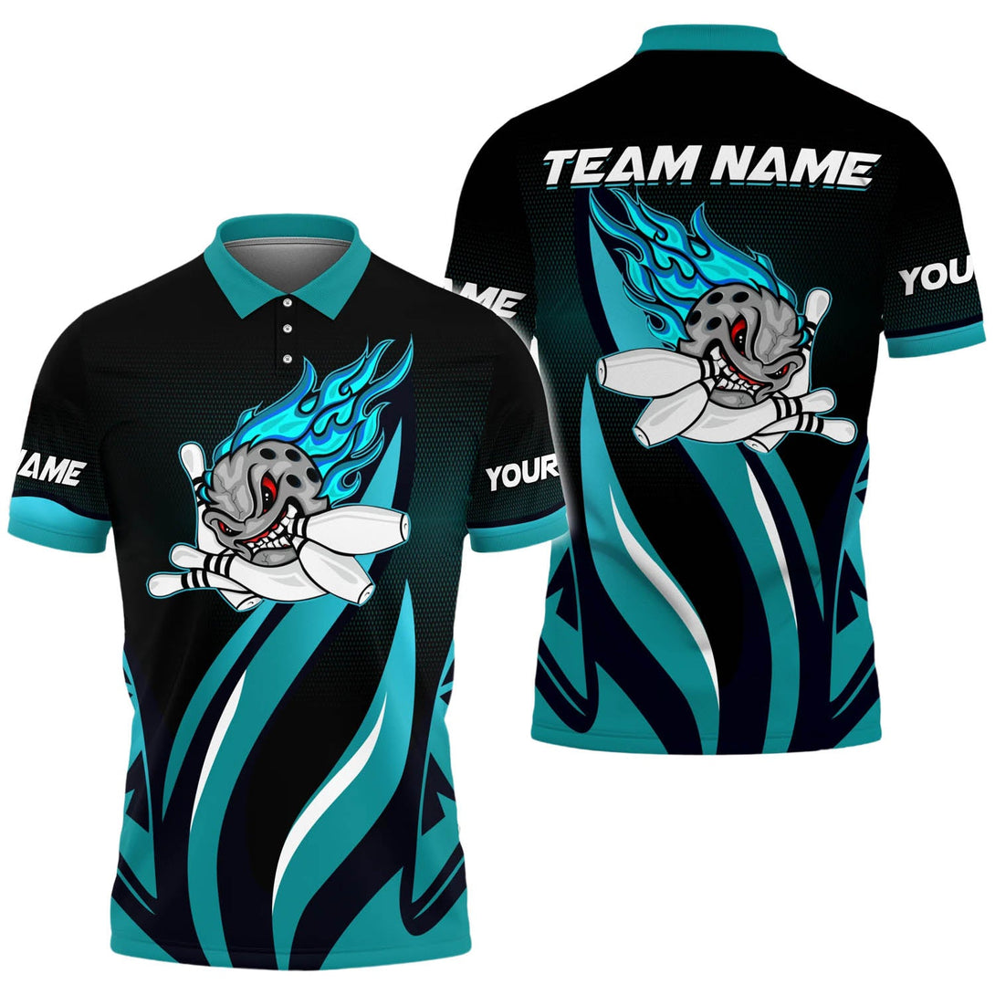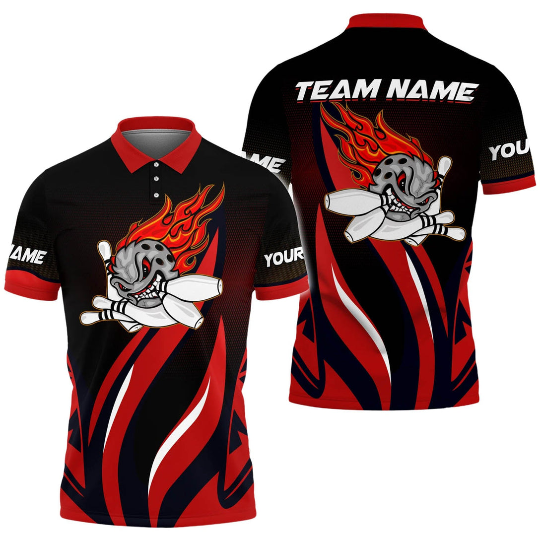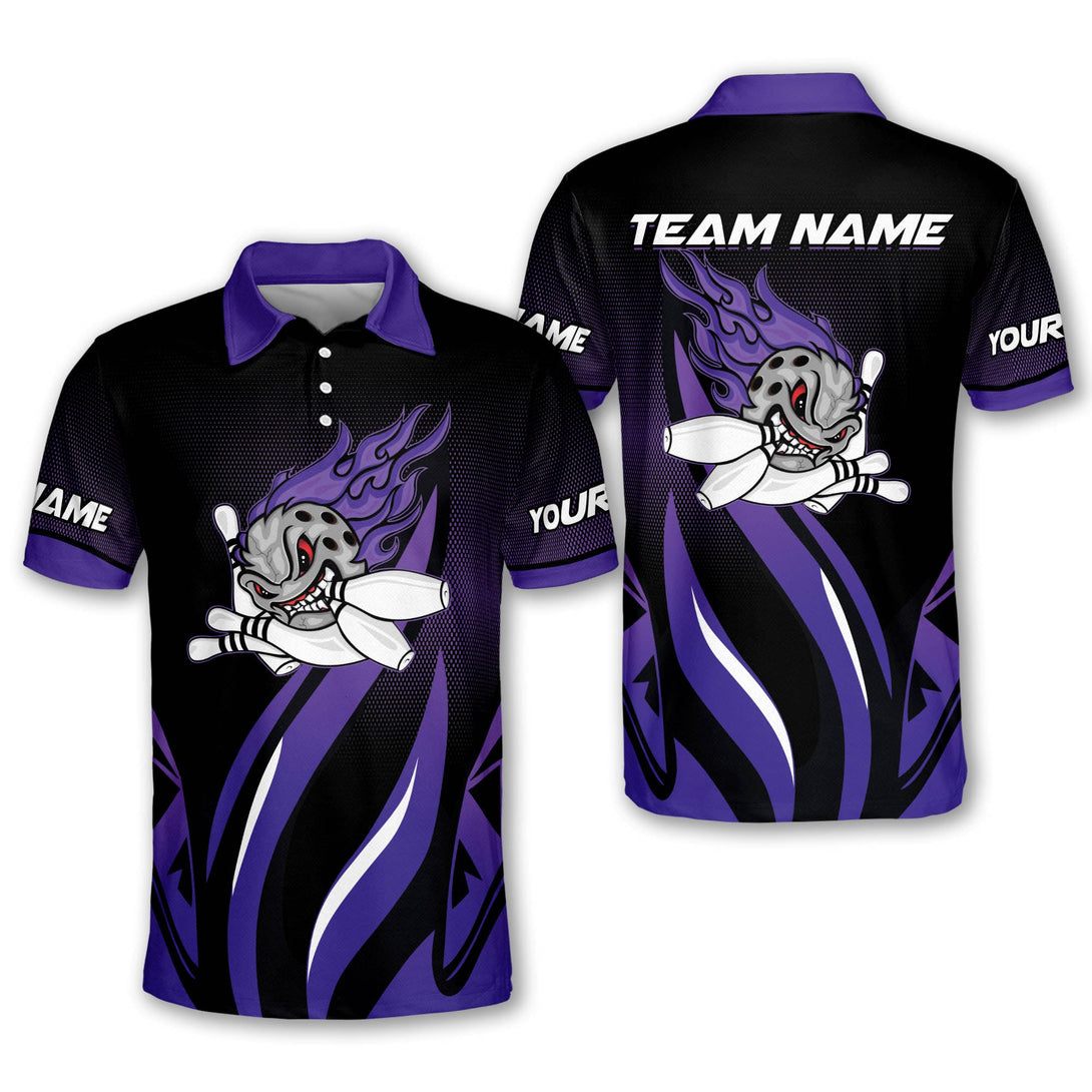 Custom Purple Flame Ball Bowling Polo Shirt For Men, Custom Team Flame Bowling Shirt BO0327