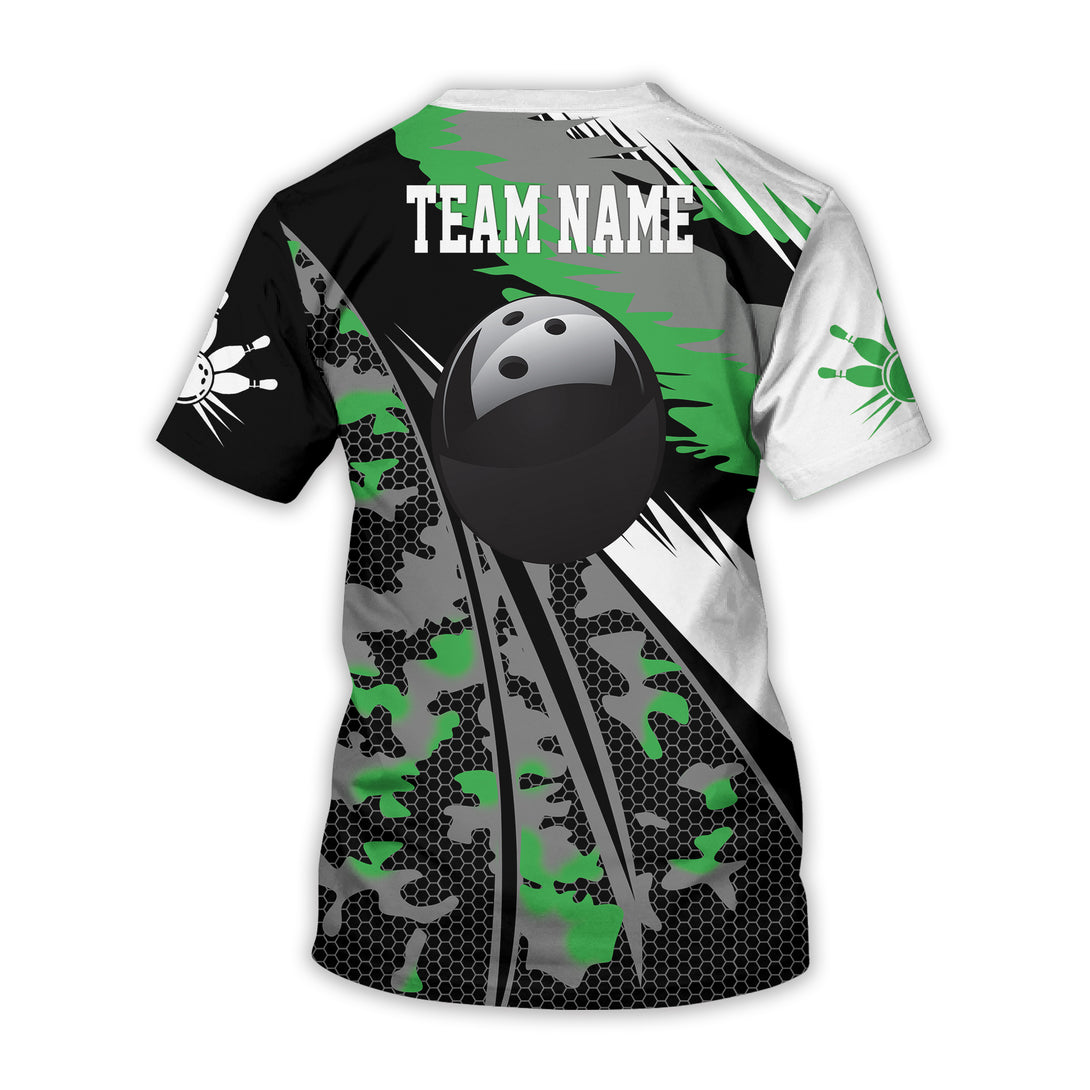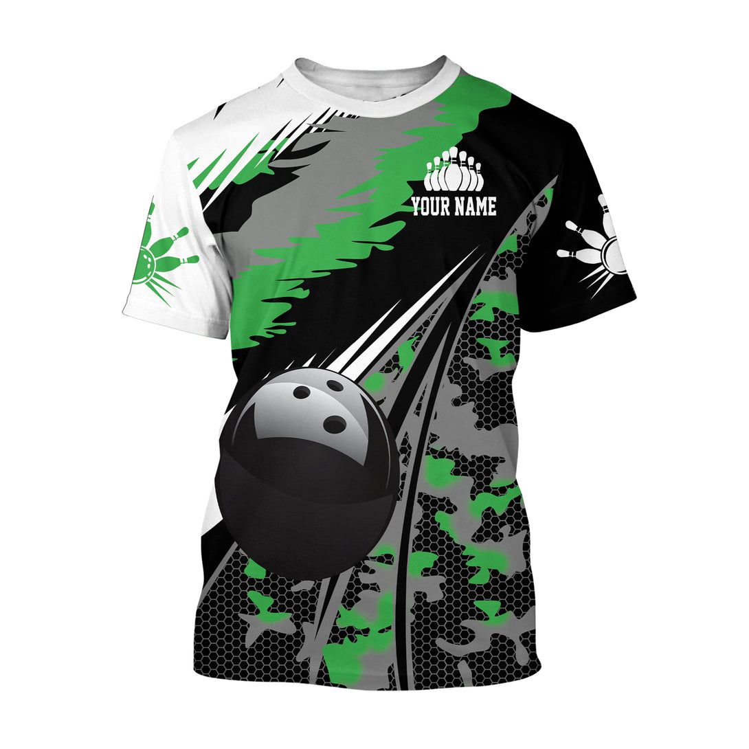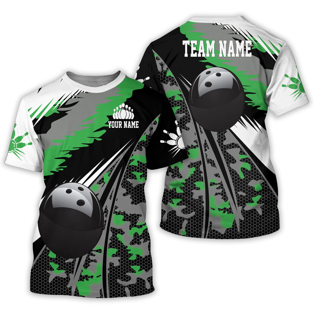 Custom Green Camo Bowling T Shirt For Men, Custom Bowling Team Shirts BZ0160