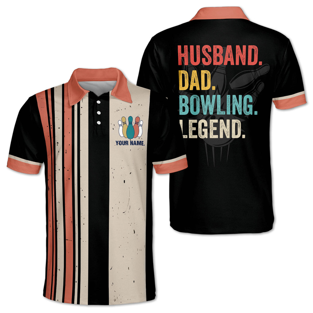 Custom Husband Dad Bowling Legend Polo Shirt For Men, Custom Vintage Bowling Dad Shirt For Father Day BM0322