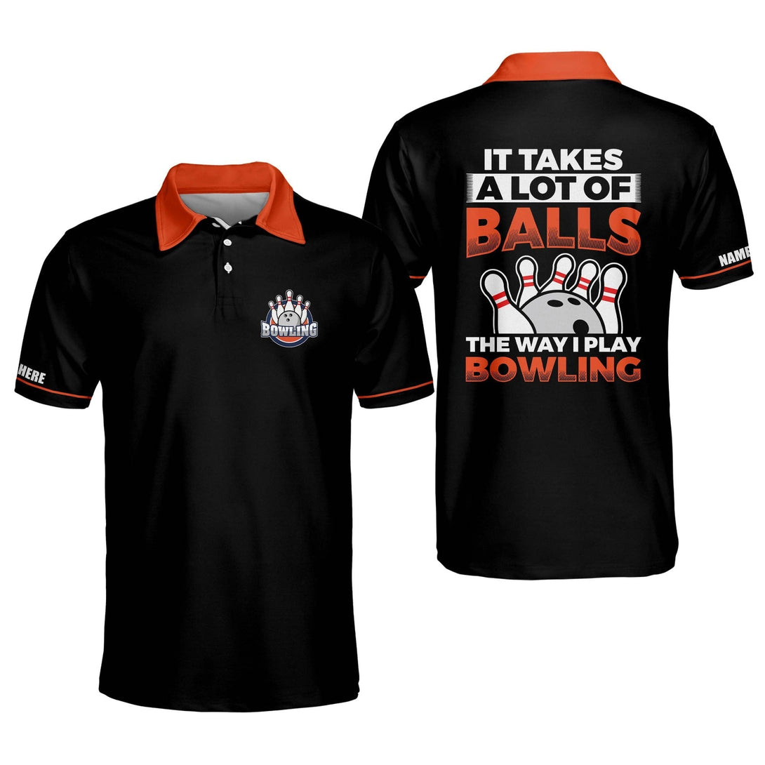 Custom It Takes A Lot Of Balls The Way I Play Bowling Polo Shirt For Men, Custom Funny Black Bowling Shirt BM0062