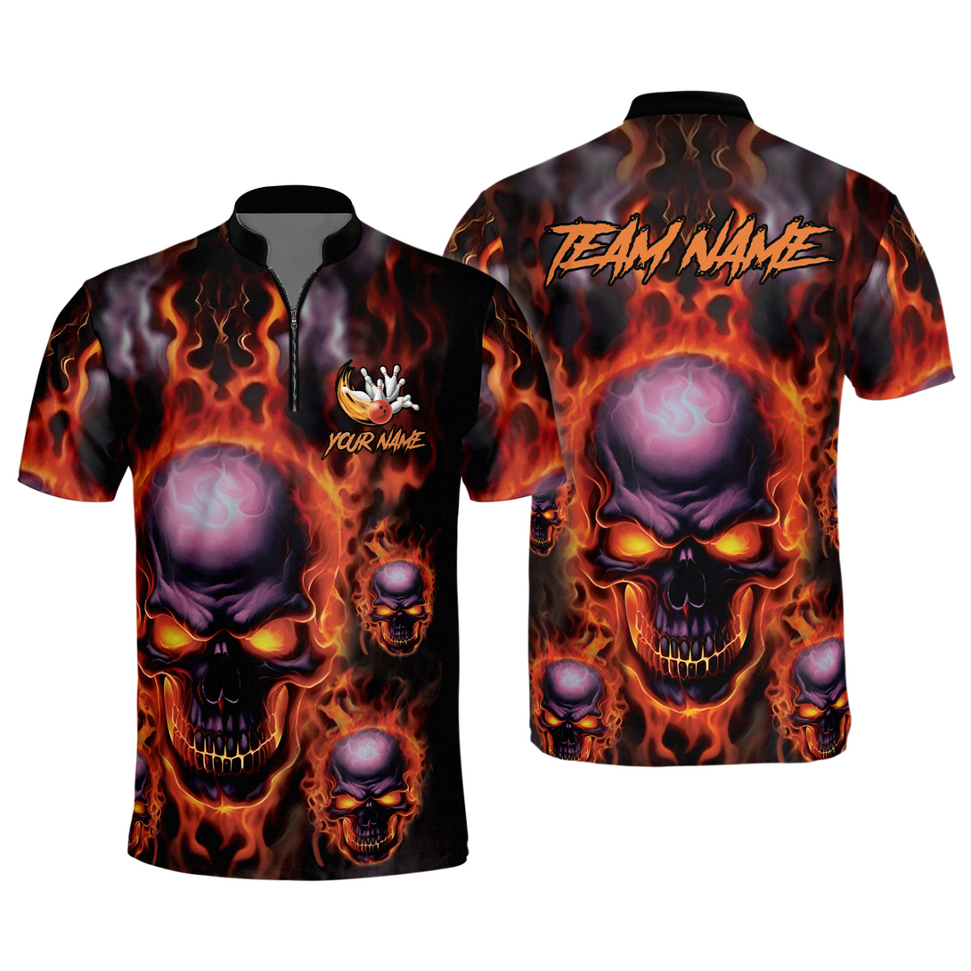 Custom Mens Skull Bowling Jersey Shirt, Custom Skull Bowling Team Shirts BZ0238