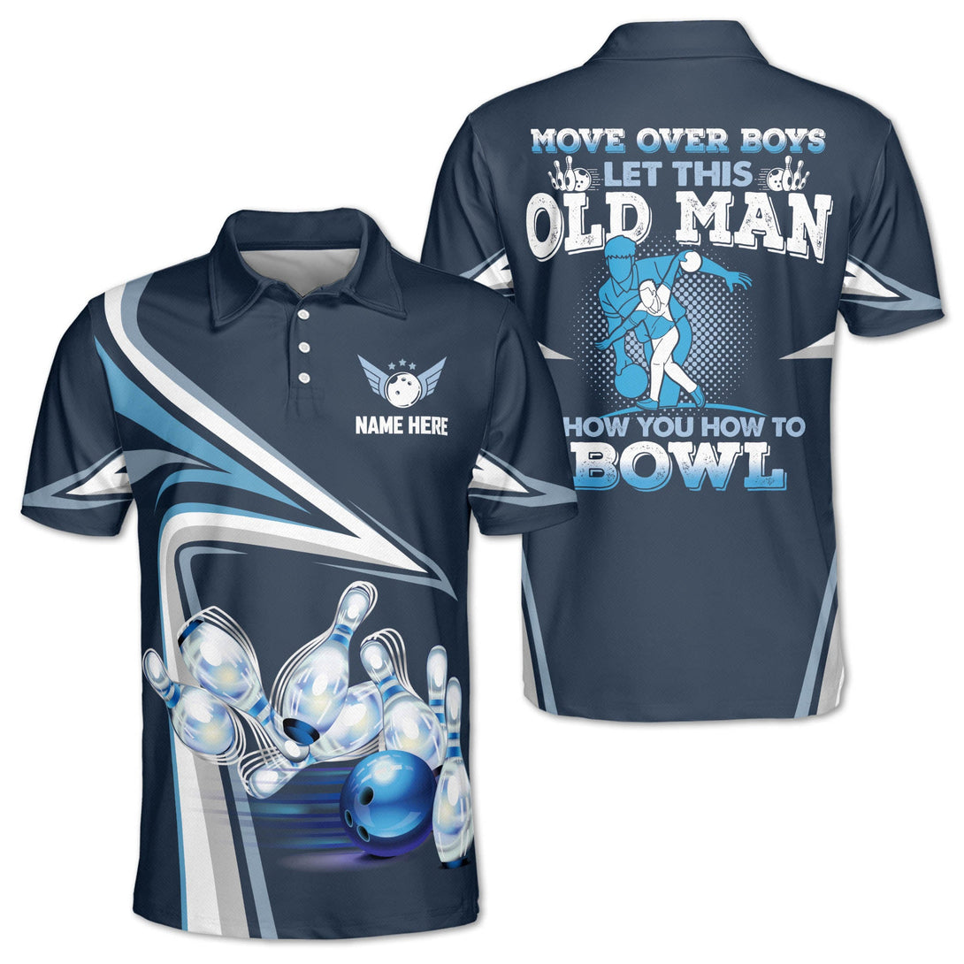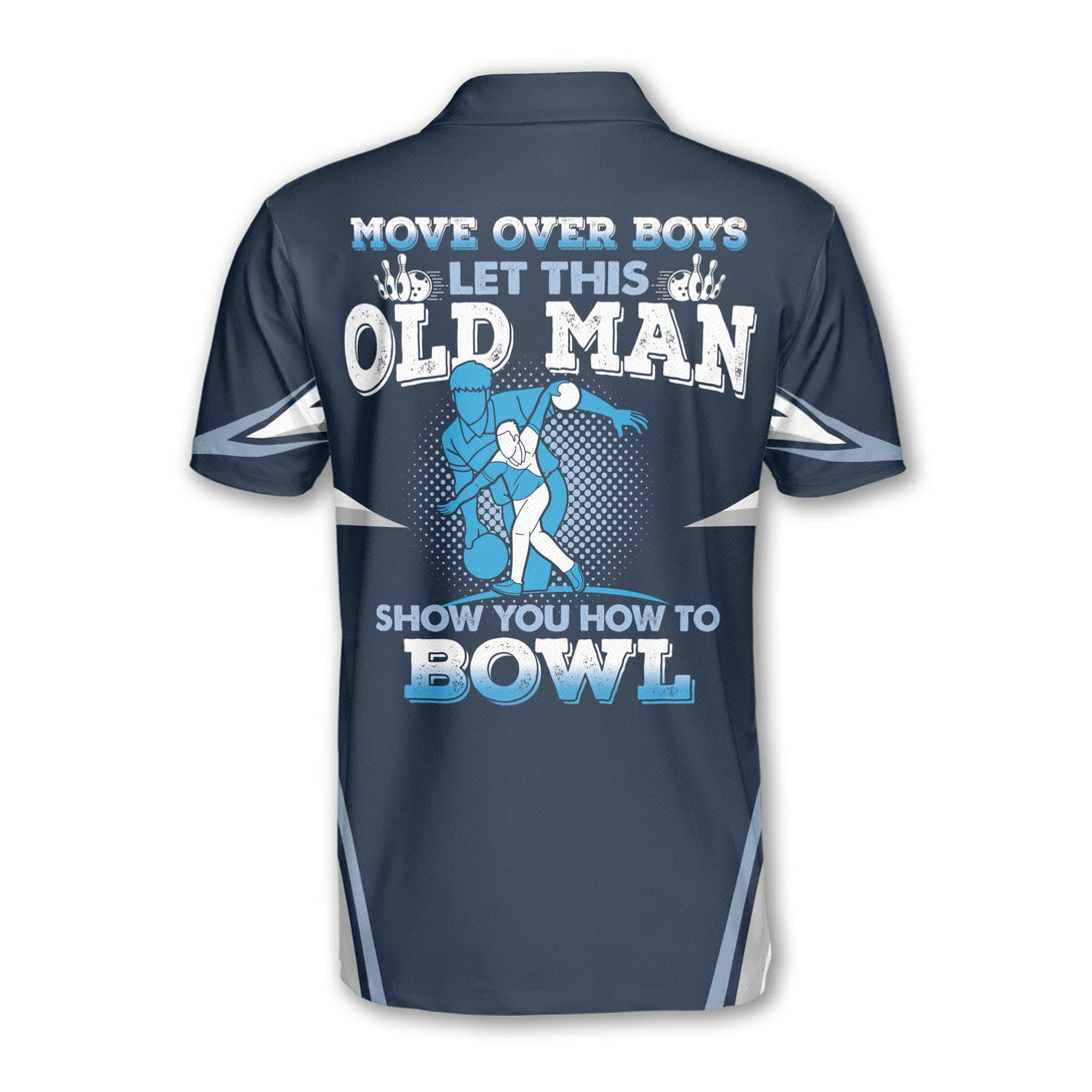 Move Over Boys Let This Old Man Show You How To Bowl Bowling Polo Shirt For Men, Funny Blue Bowling Shirt BZ0115
