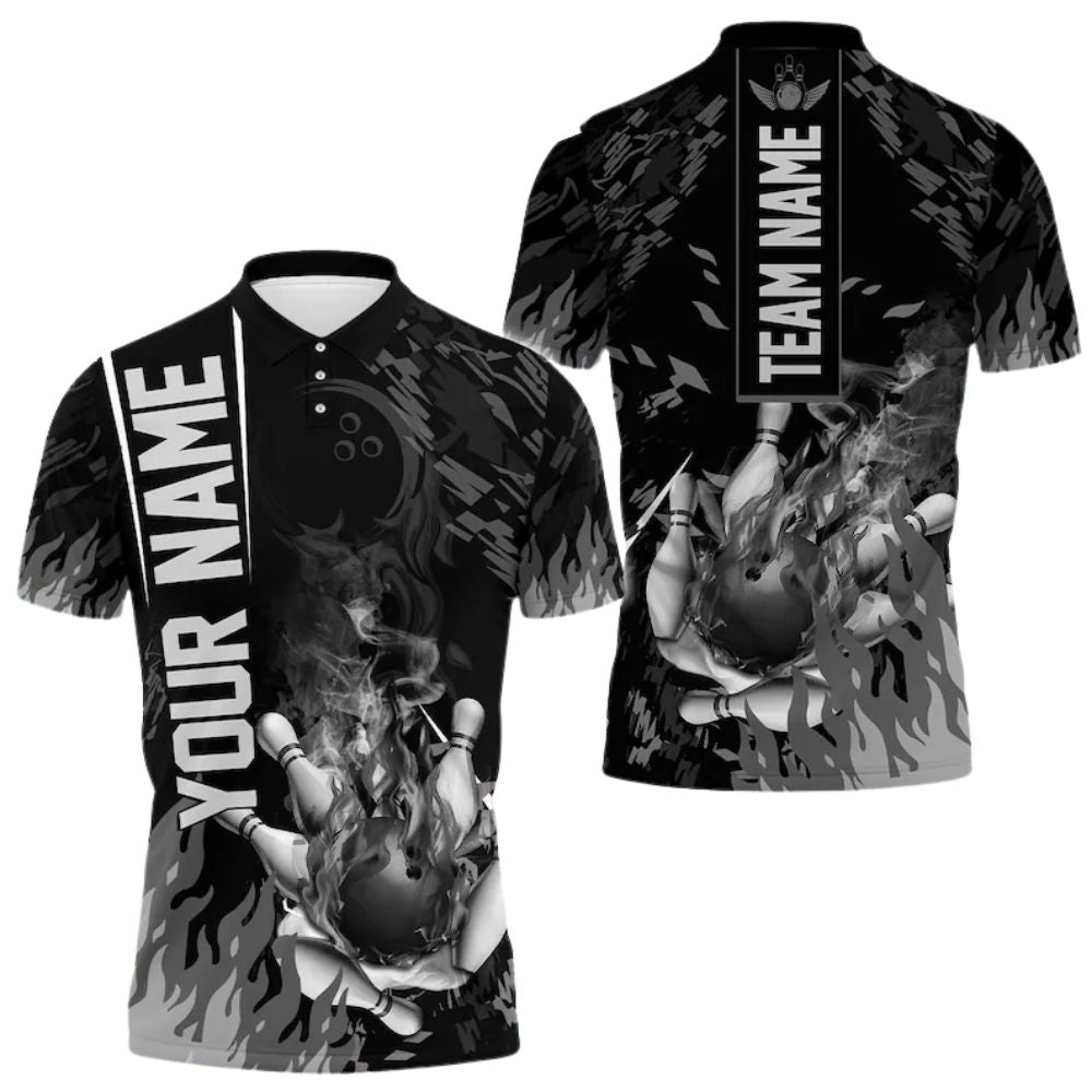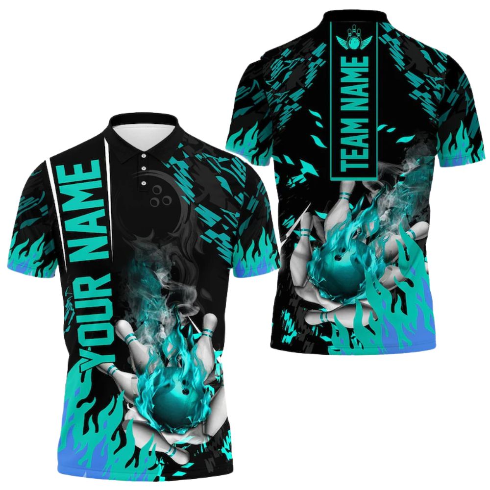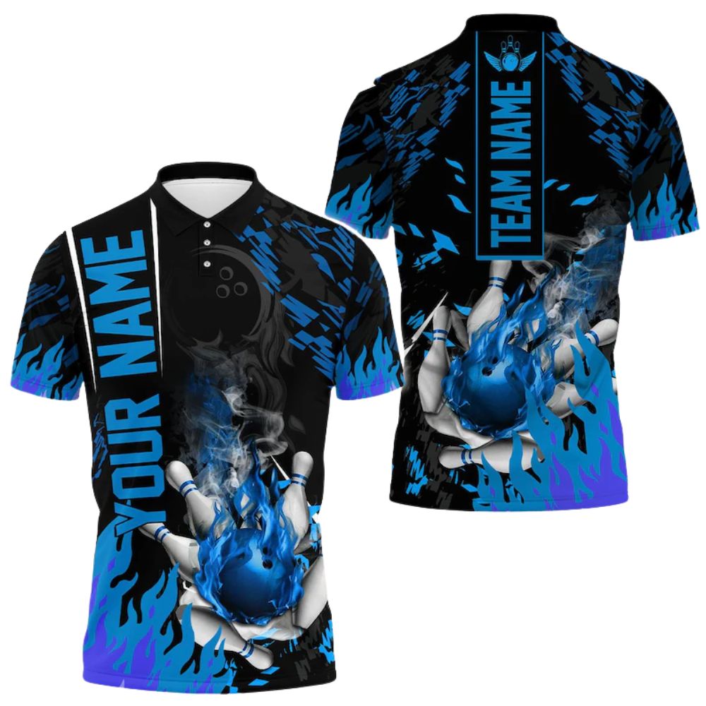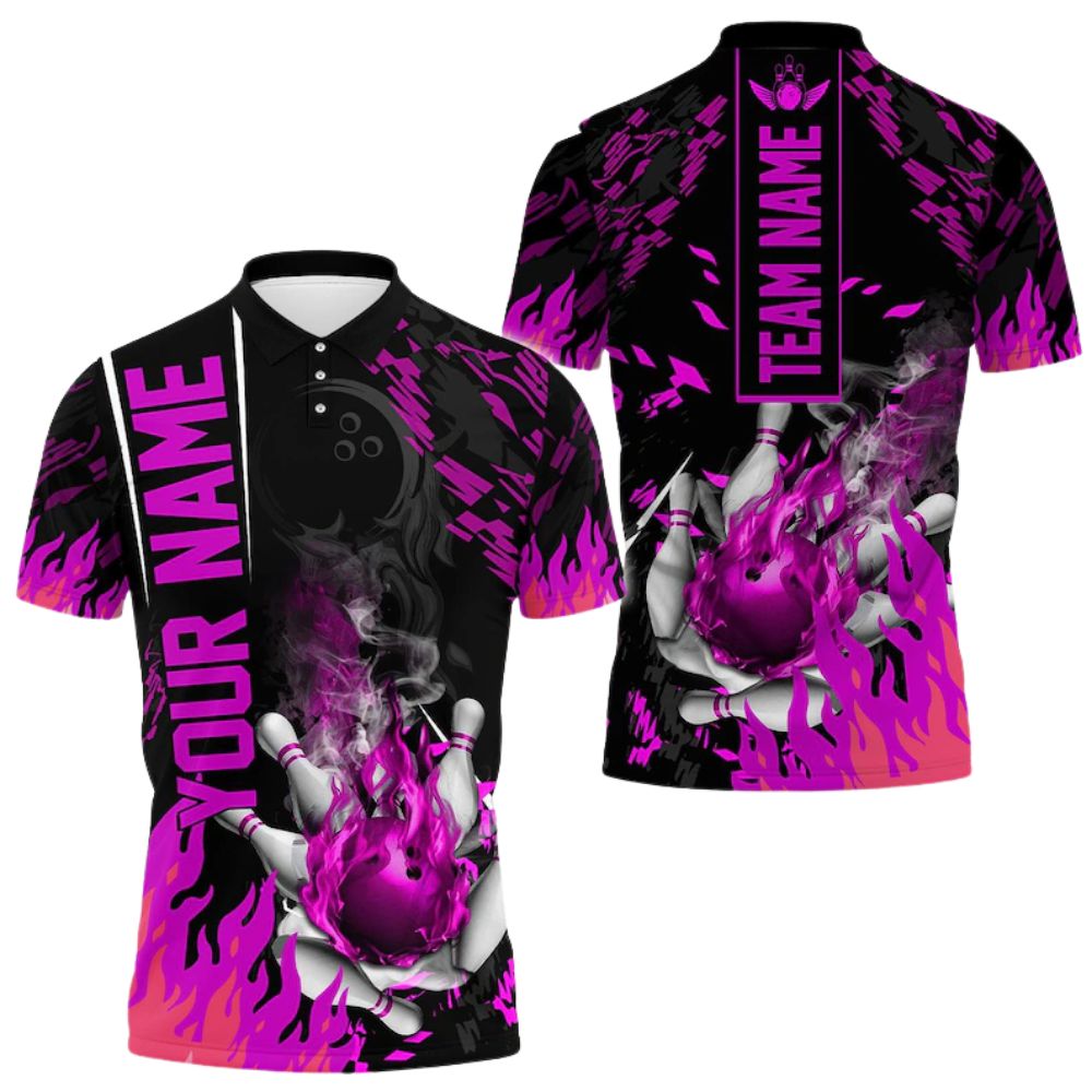 Custom Purple Flame Bowling Men Polo Shirt, Custom Flame Bowling Team Shirts BE0103