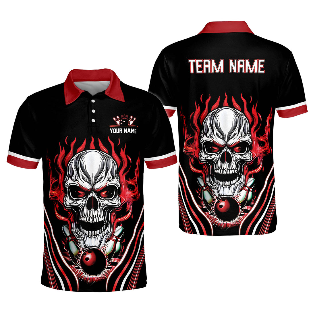 Custom Red Black Skull Bowling Polo Shirt For Men, Custom Skull Bowling Team Shirts BZ0220