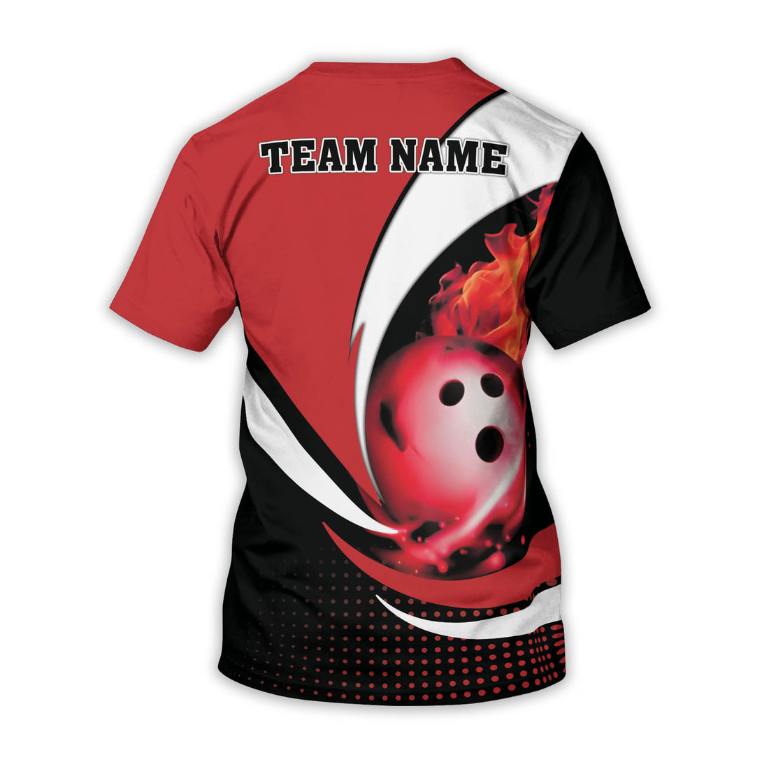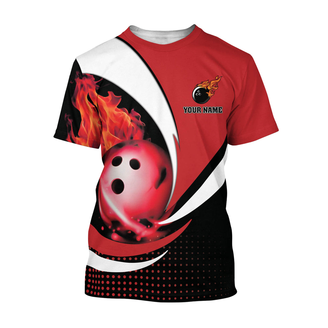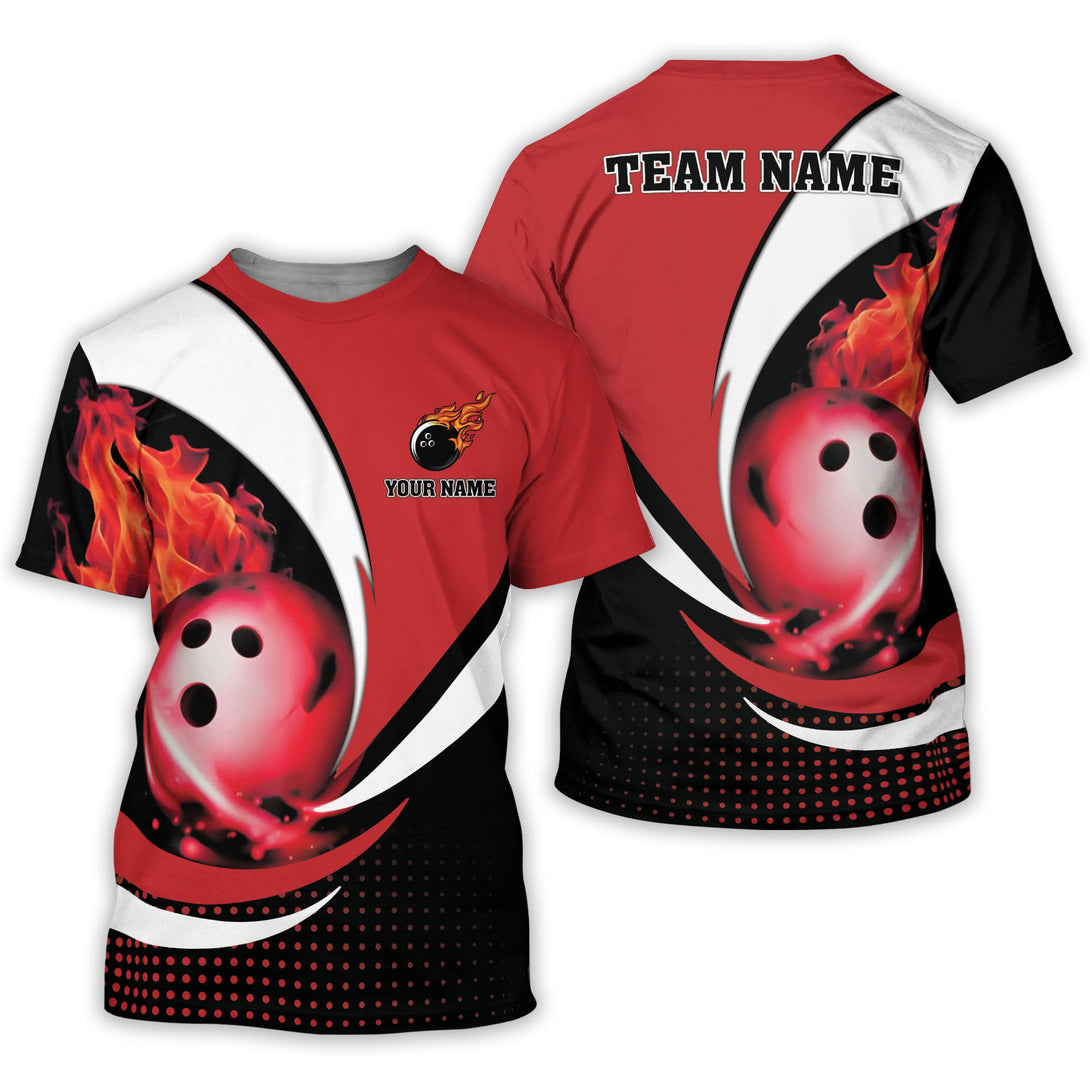 Custom Red Flame Ball Bowling T Shirt For Men, Custom Flame Bowling Team Shirts BZ0091