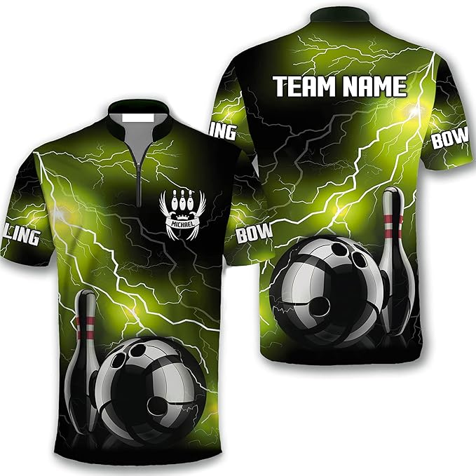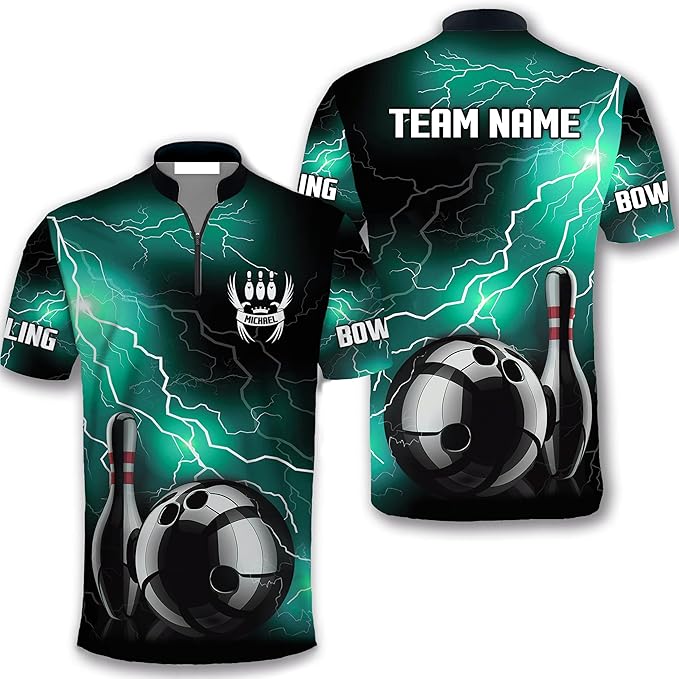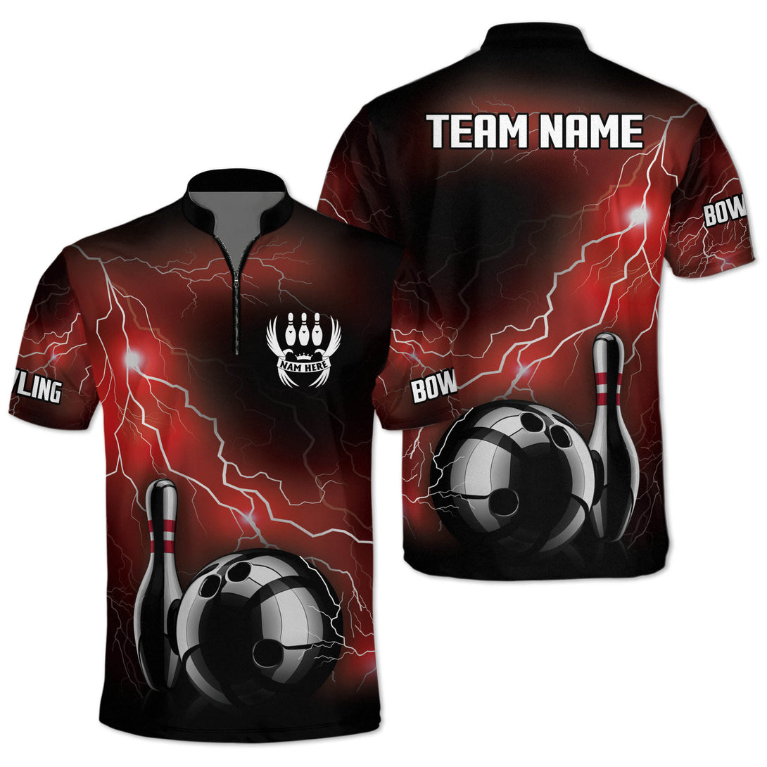 Custom Thunder Bowling Jersey Shirt For Men, Custom Team Black And Red Bowling Shirt BZ0002