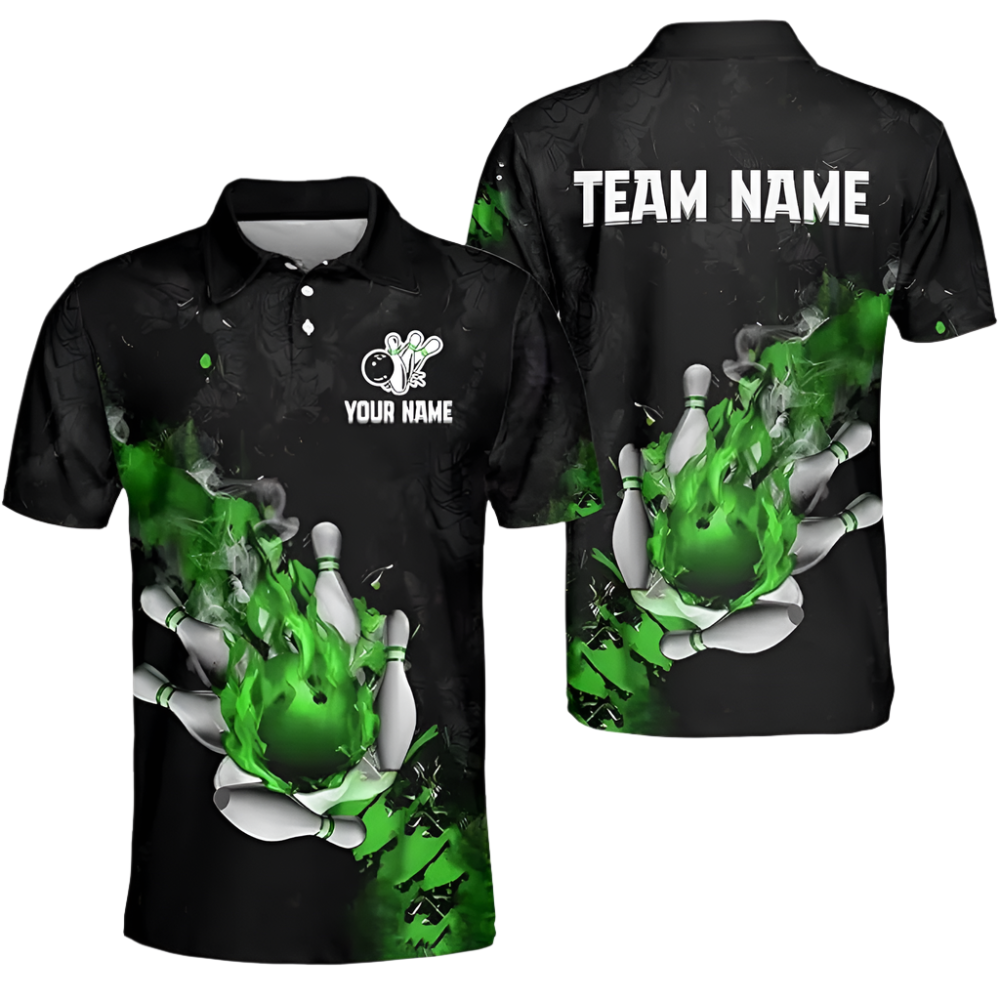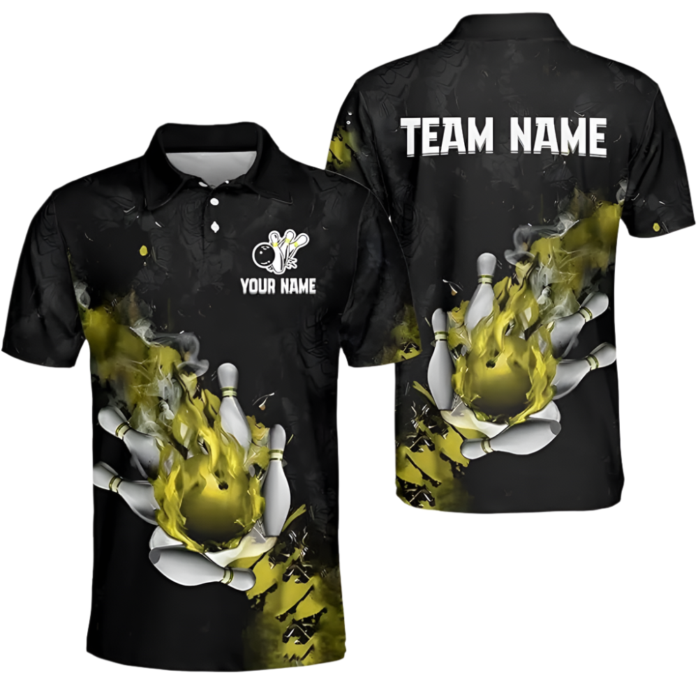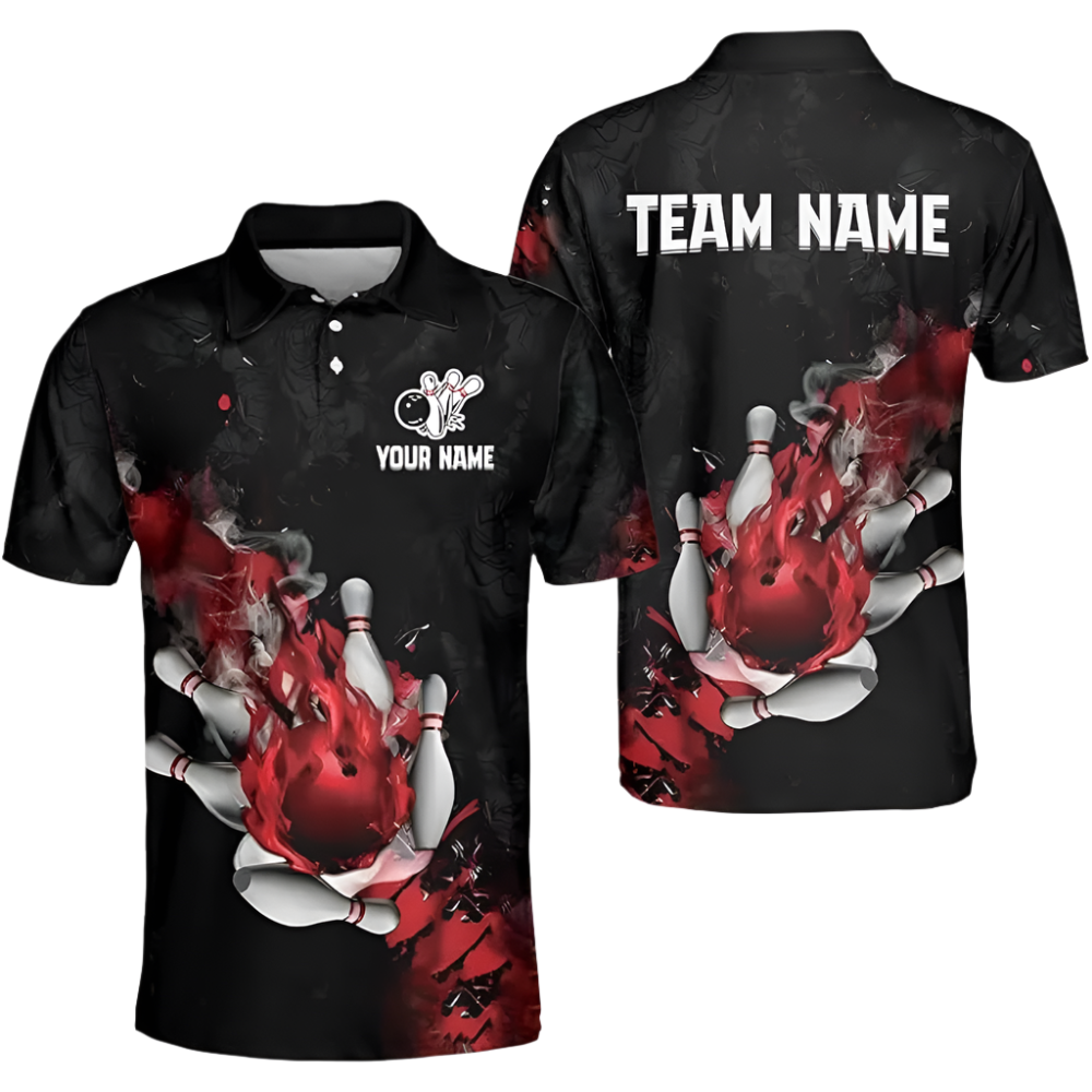 Custom Red Flame Ball Bowling Polo Shirt For Men, Custom Bowling Team Shirts BZ0183