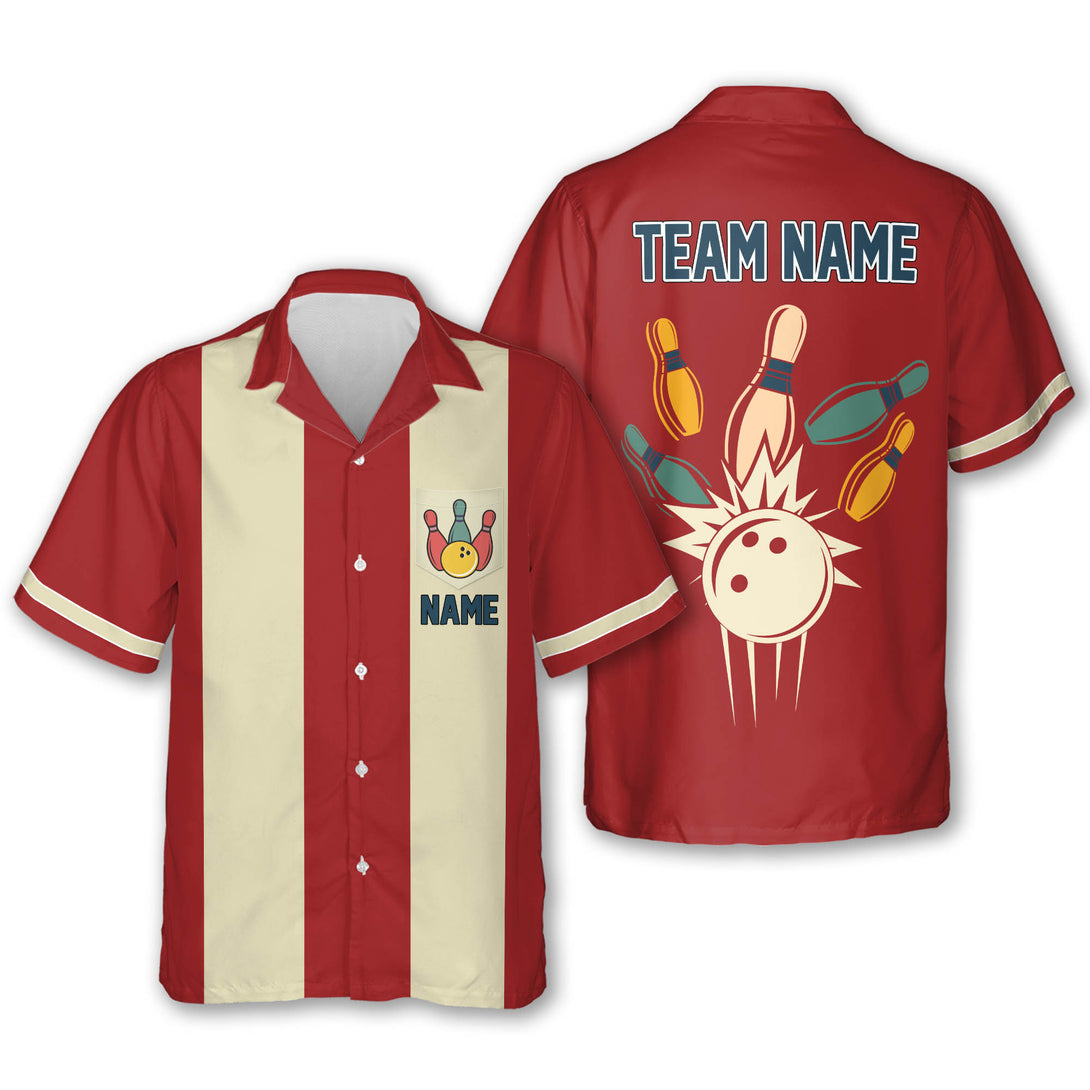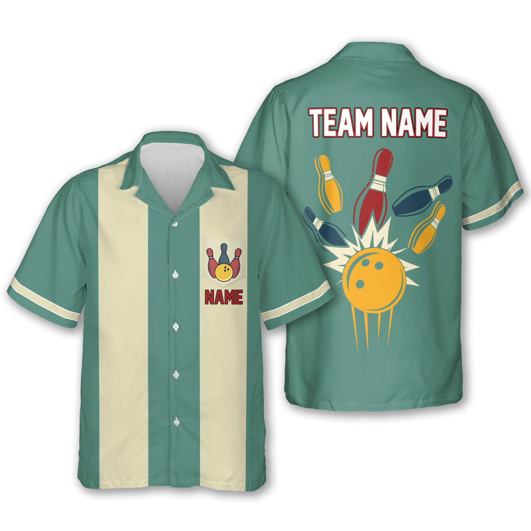 Custom Retro Bowling Hawaiian Shirts For Men, Custom Bowling Team Shirts BE0049