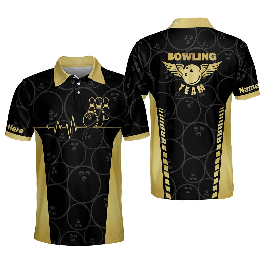 Custom Black And Yellow Team Bowling Polo Shirt For Men, Custom Bowling Shirt BM0018