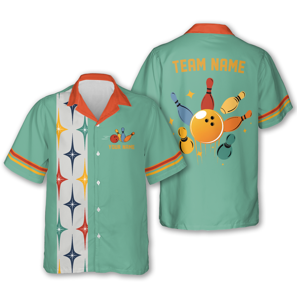 Custom Retro Hawaiian Bowling Team Shirts Men, Custom Bowling Team Shirts HB0185