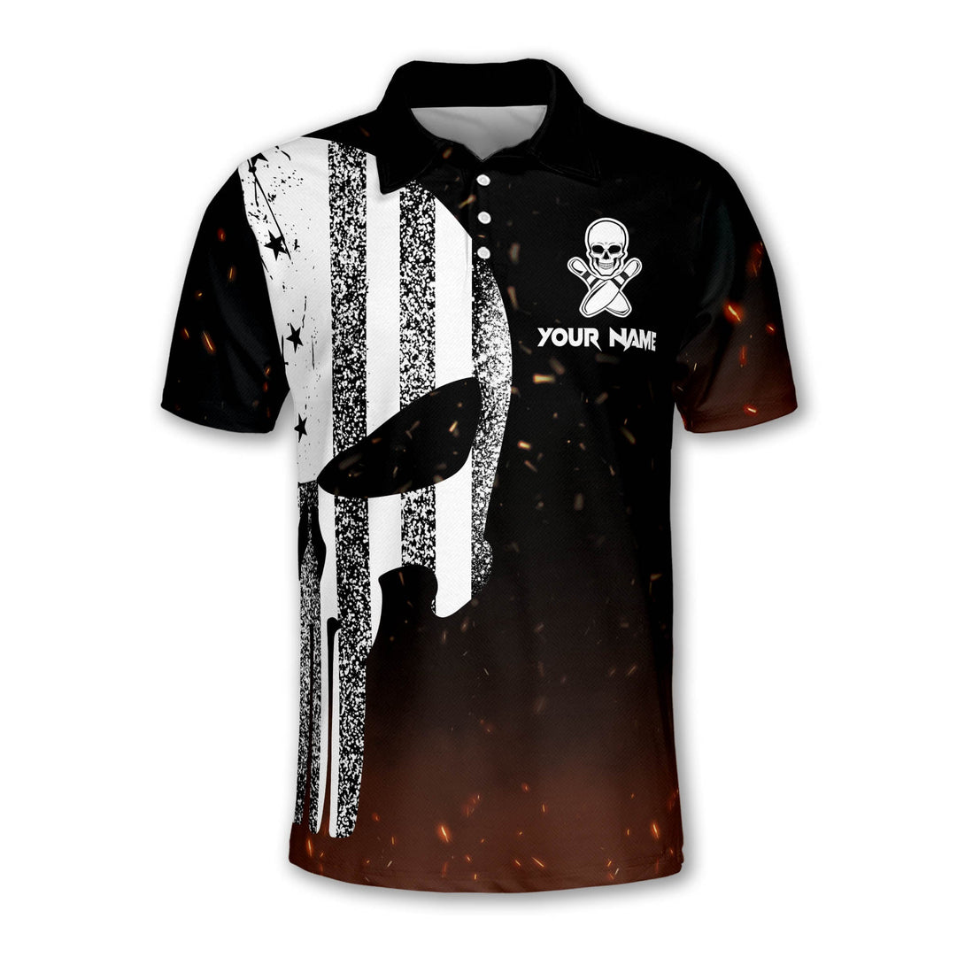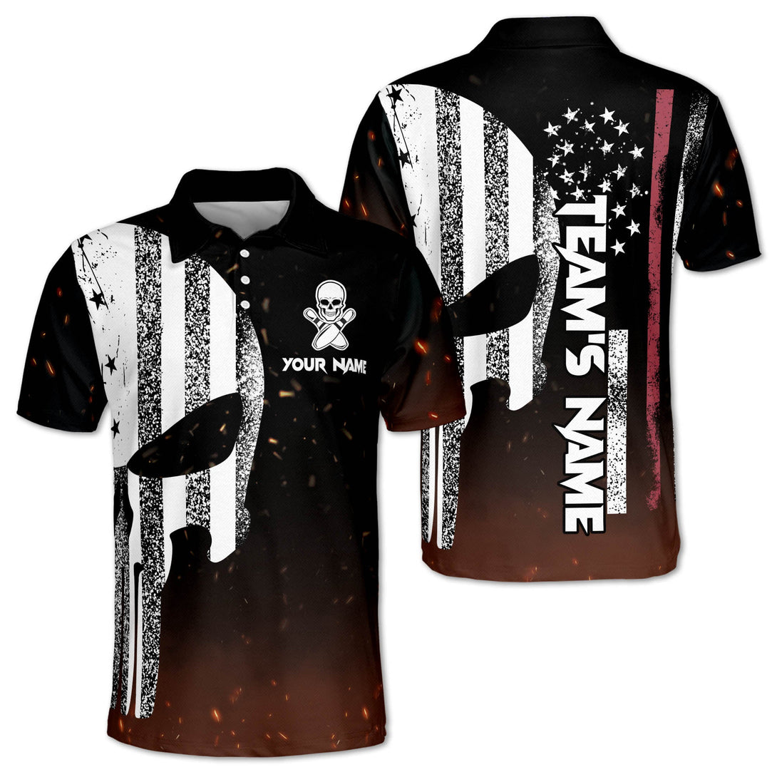 Custom Skull Bowling Polo Shirt For Men, Custom Skull Bowling Team Shirts BZ0157