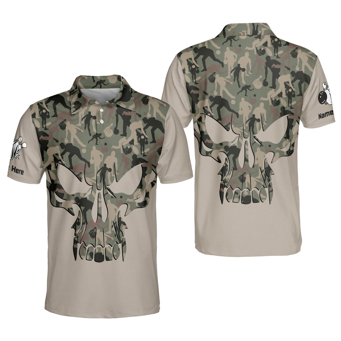 Custom Skull Bowling Polo Shirt For Men, Custom Skull Camo Bowling Shirt BM0120