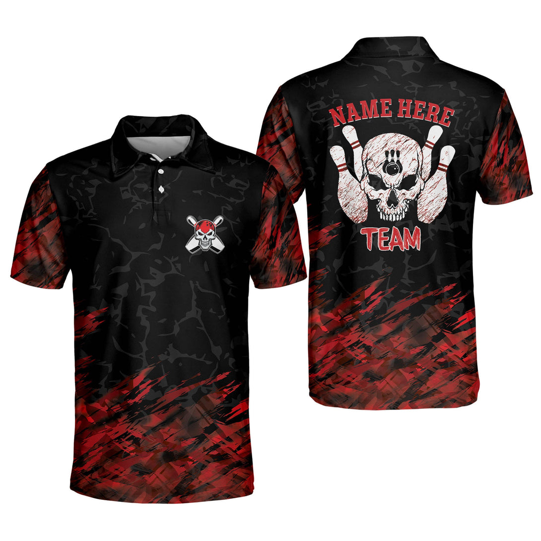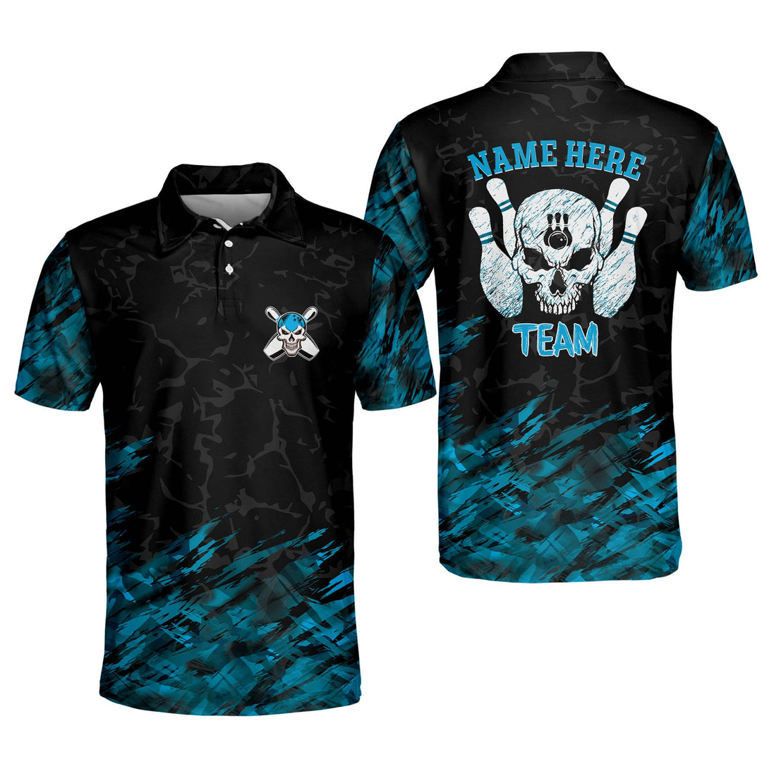 Custom Skull Bowling Polo Shirt For Men, Custom Black And Blue Skull Bowling Team Shirts BM0071