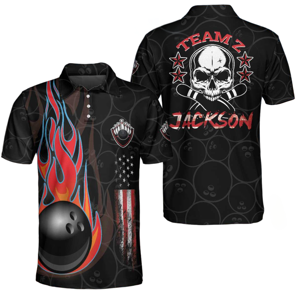 Custom Skull Bowling Polo Shirt For Men, Custom Team Red Flame Skull Bowling Shirt BO0315