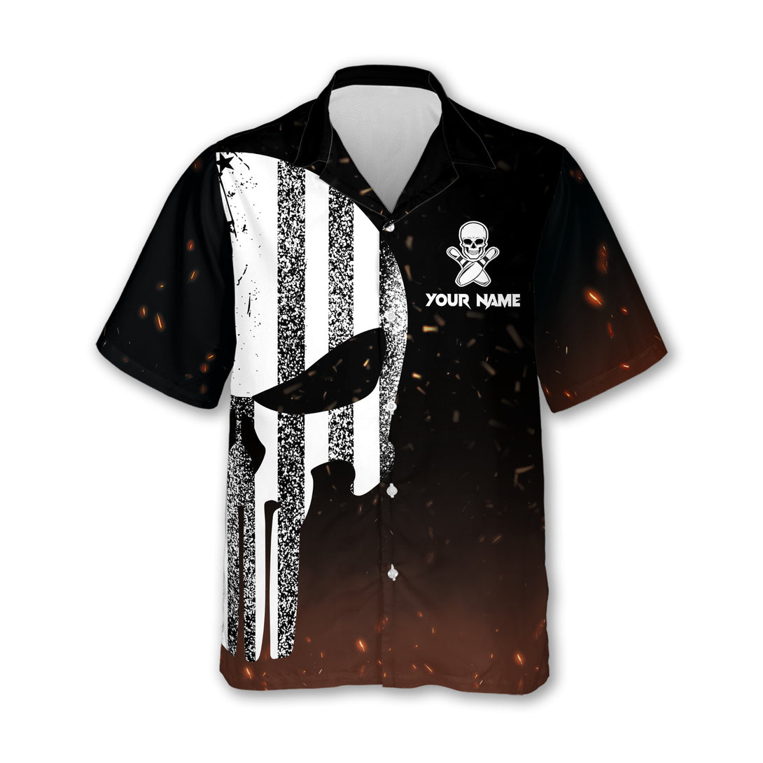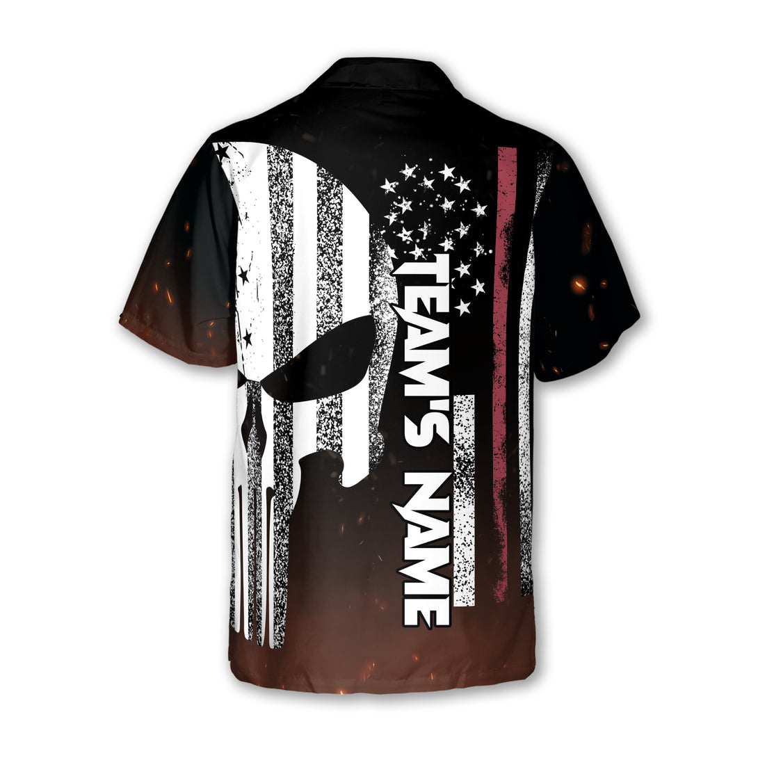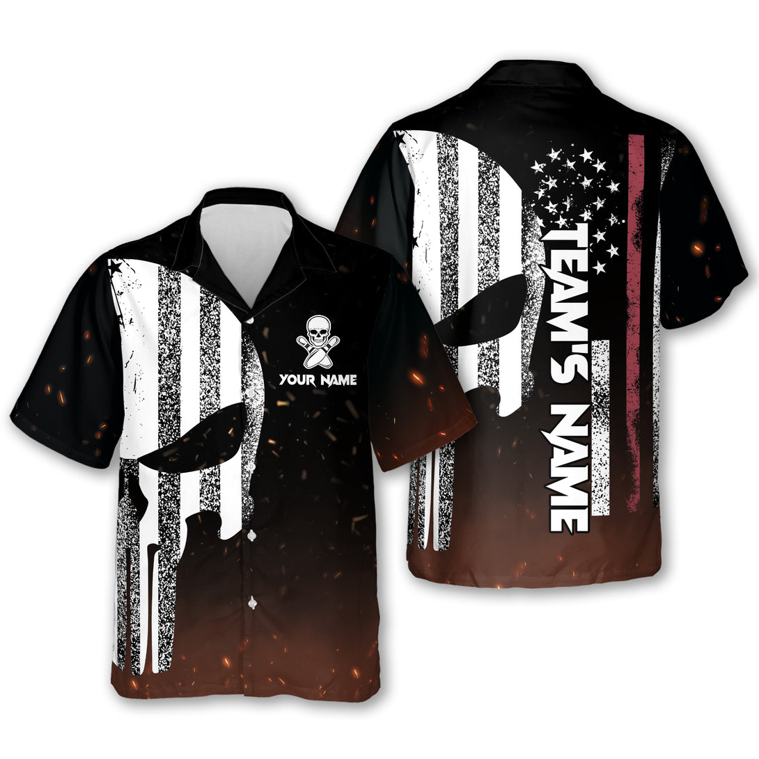Custom Skull Patriotic Bowling Hawaiian Shirt For Men, Custom Skull Bowling Team Shirts HB0183