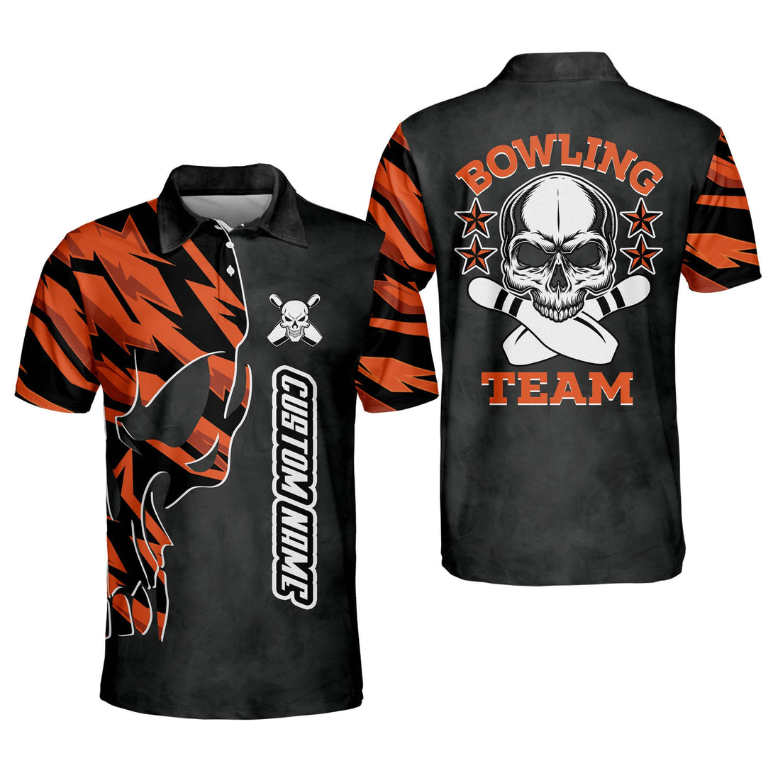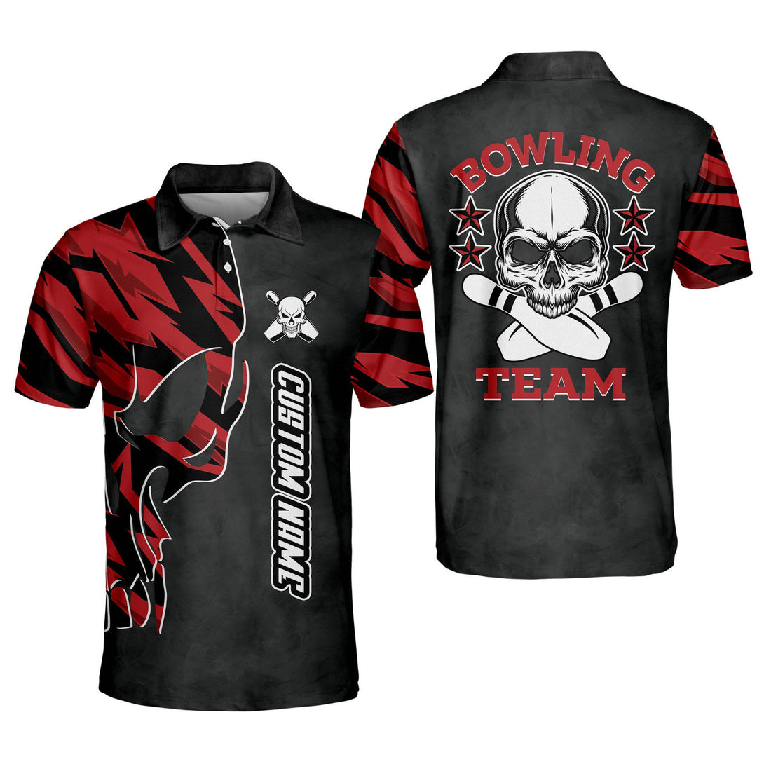 Custom Skull Bowling Polo Shirt For Men, Custom Black And Red Skull Bowling Team Shirt BM0001