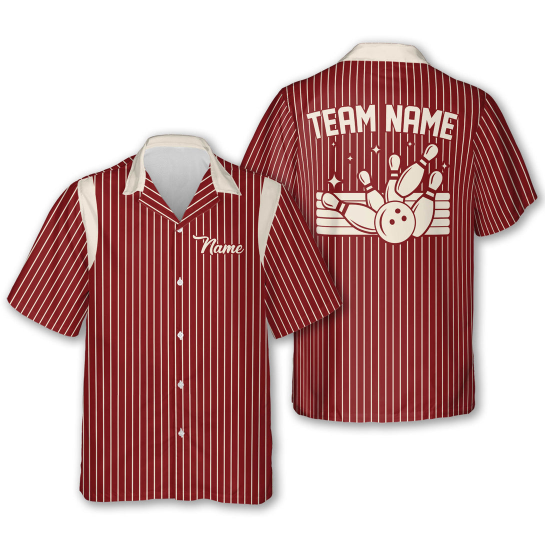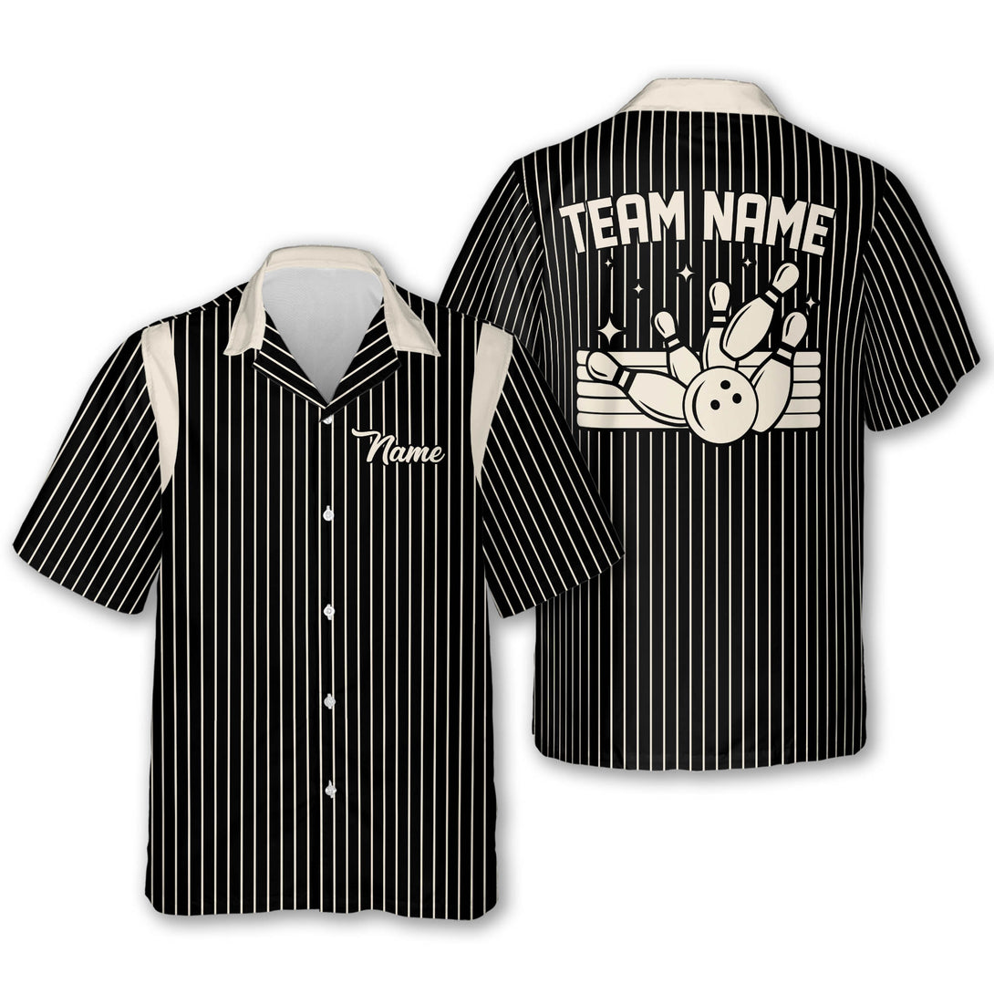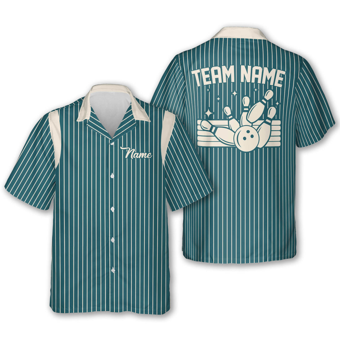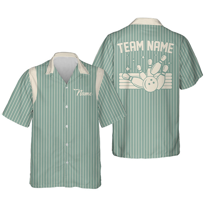 Custom Striped Hawaiian Bowling Shirts Green For Men, Custom Bowling Team Shirts BE0065