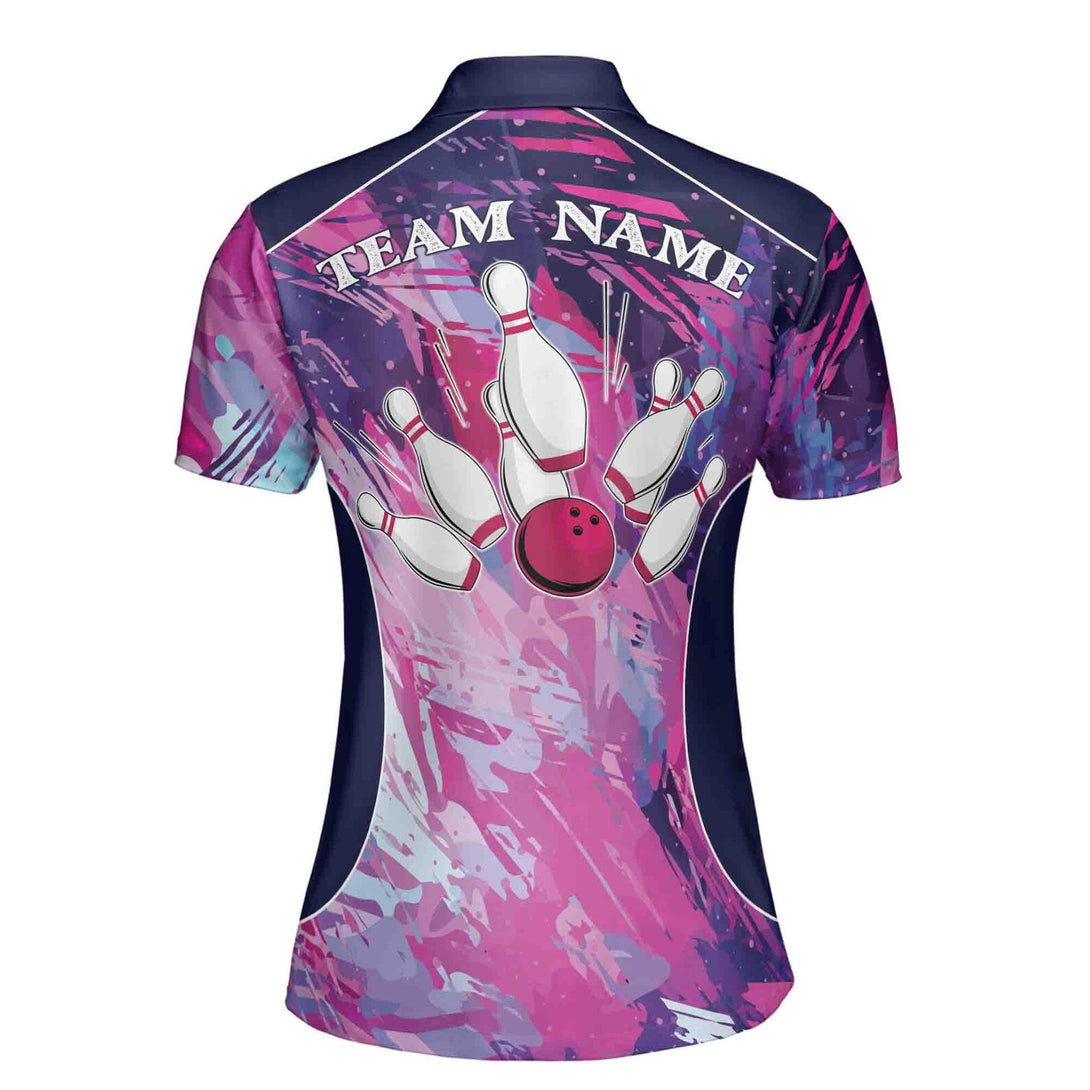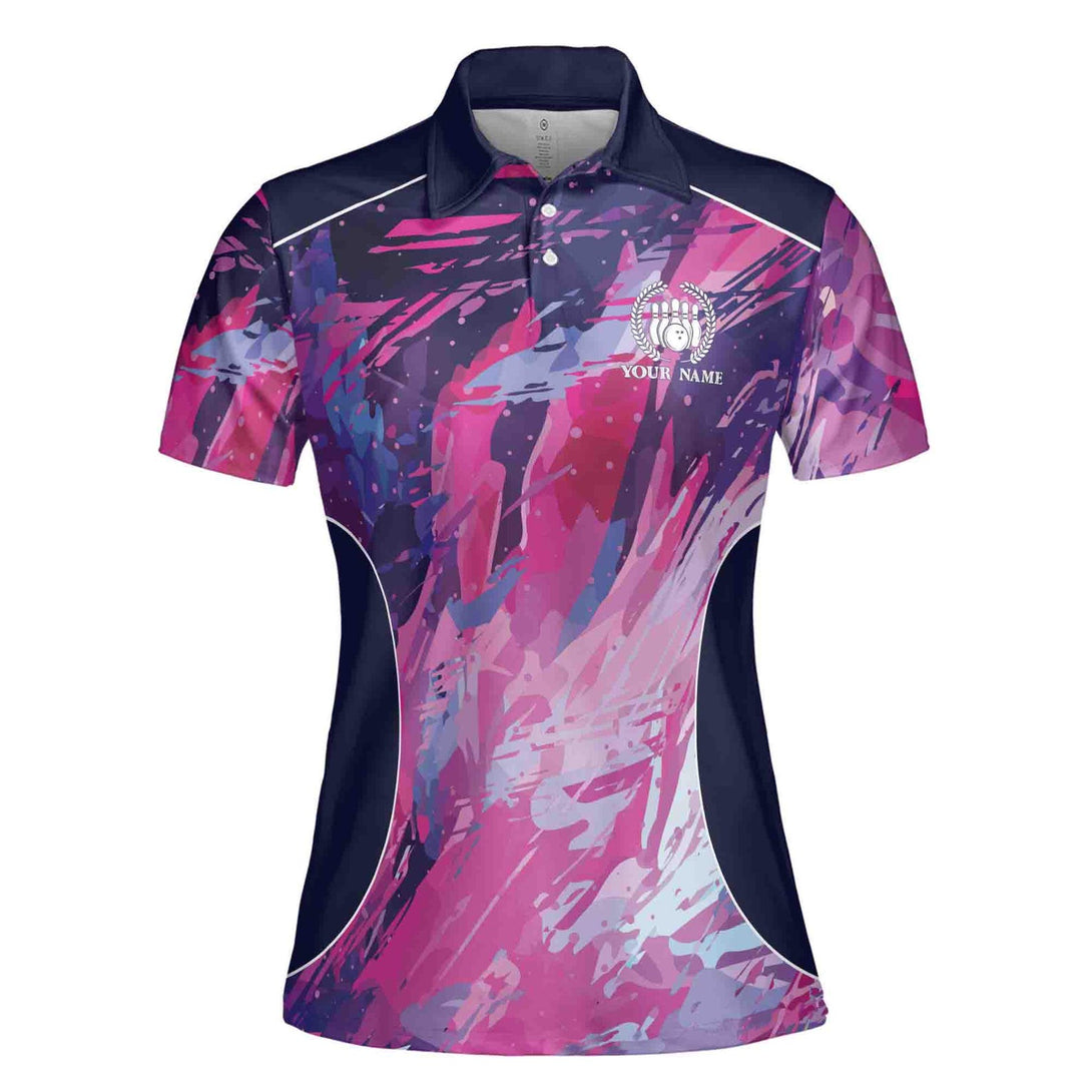 Custom Ladies Bowling Shirts, Custom Women Bowling Team Shirts, Custom Team Magenta Bowling Polo Shirt For Women BE0006
