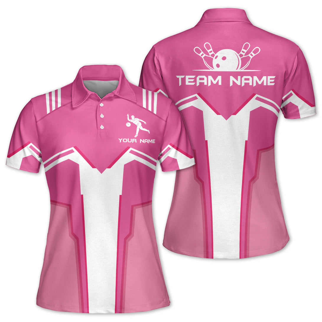 Custom Team Pink Ladies Bowling Polo Shirt, Custom Bowling Team Shirts For Women BZ0253