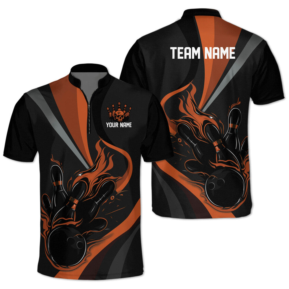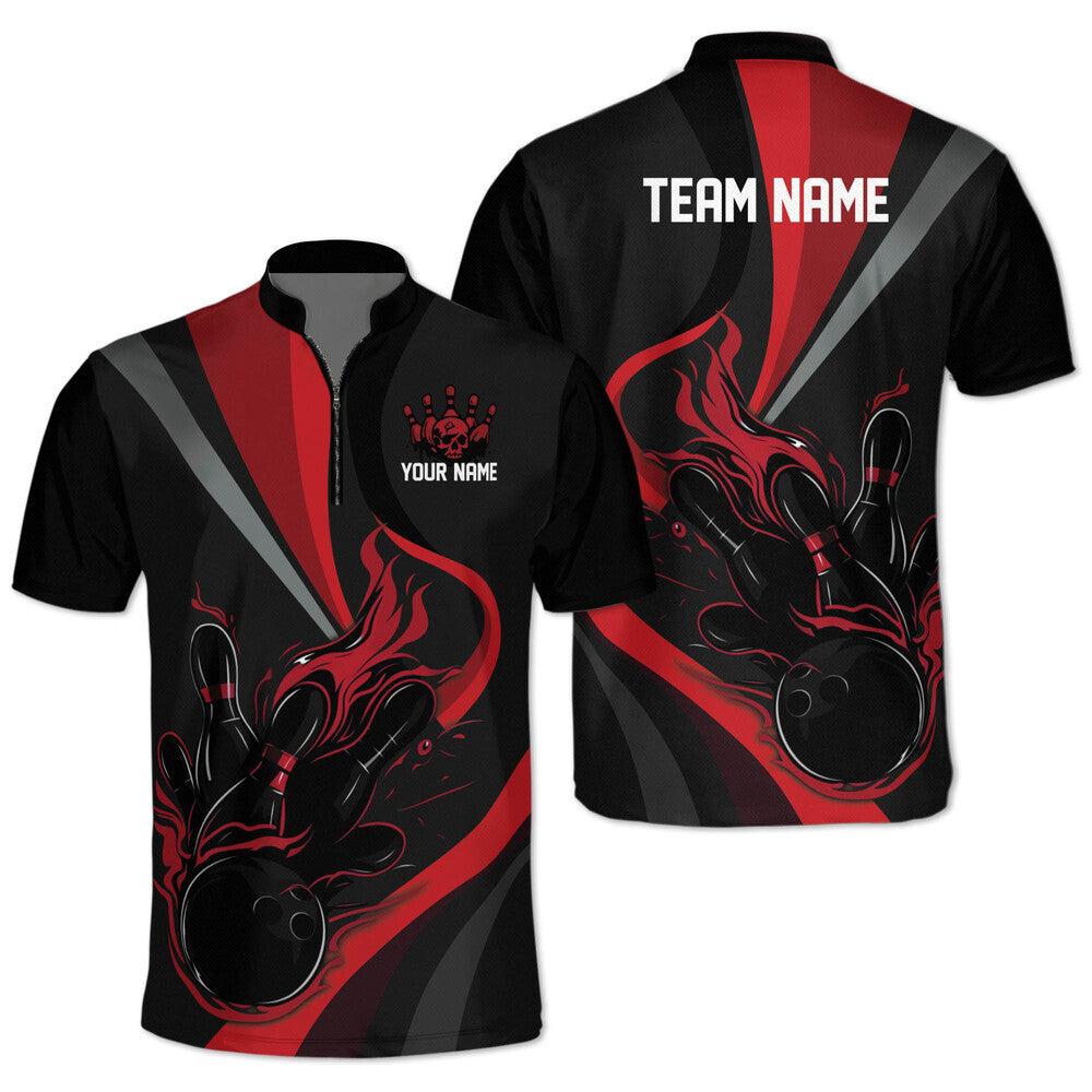 Custom Team Red And Black Bowling Jerseys Shirt For Men, Custom Bowling Team Shirts BZ0258