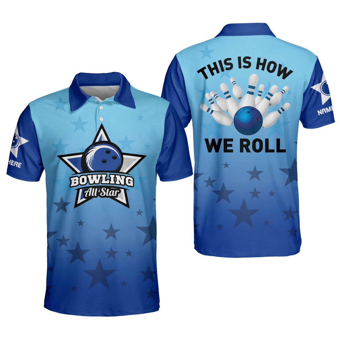 Custom This Is How We Roll Bowling Polo Shirt For Men, Custom Blue Funny Bowling Shirt BM0084