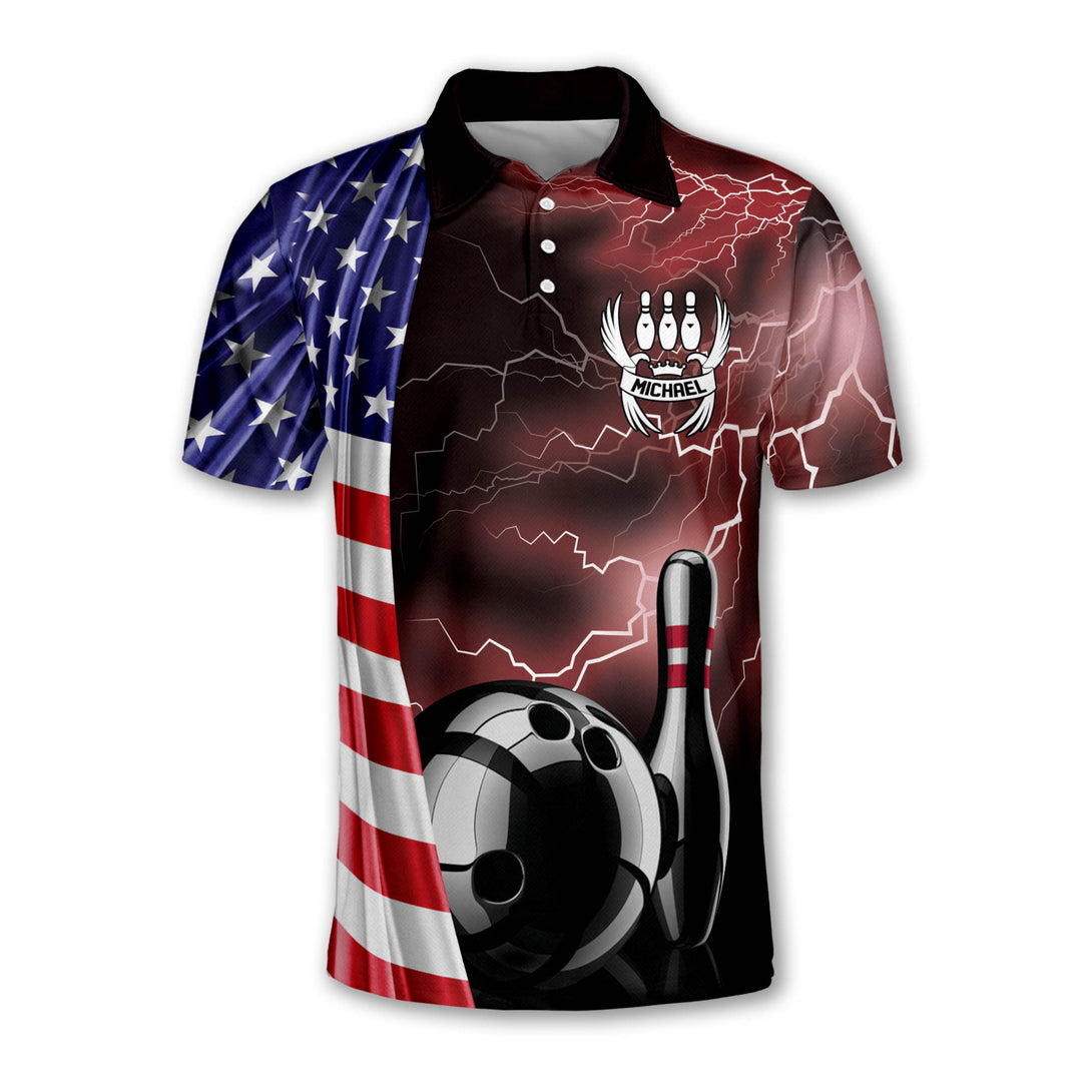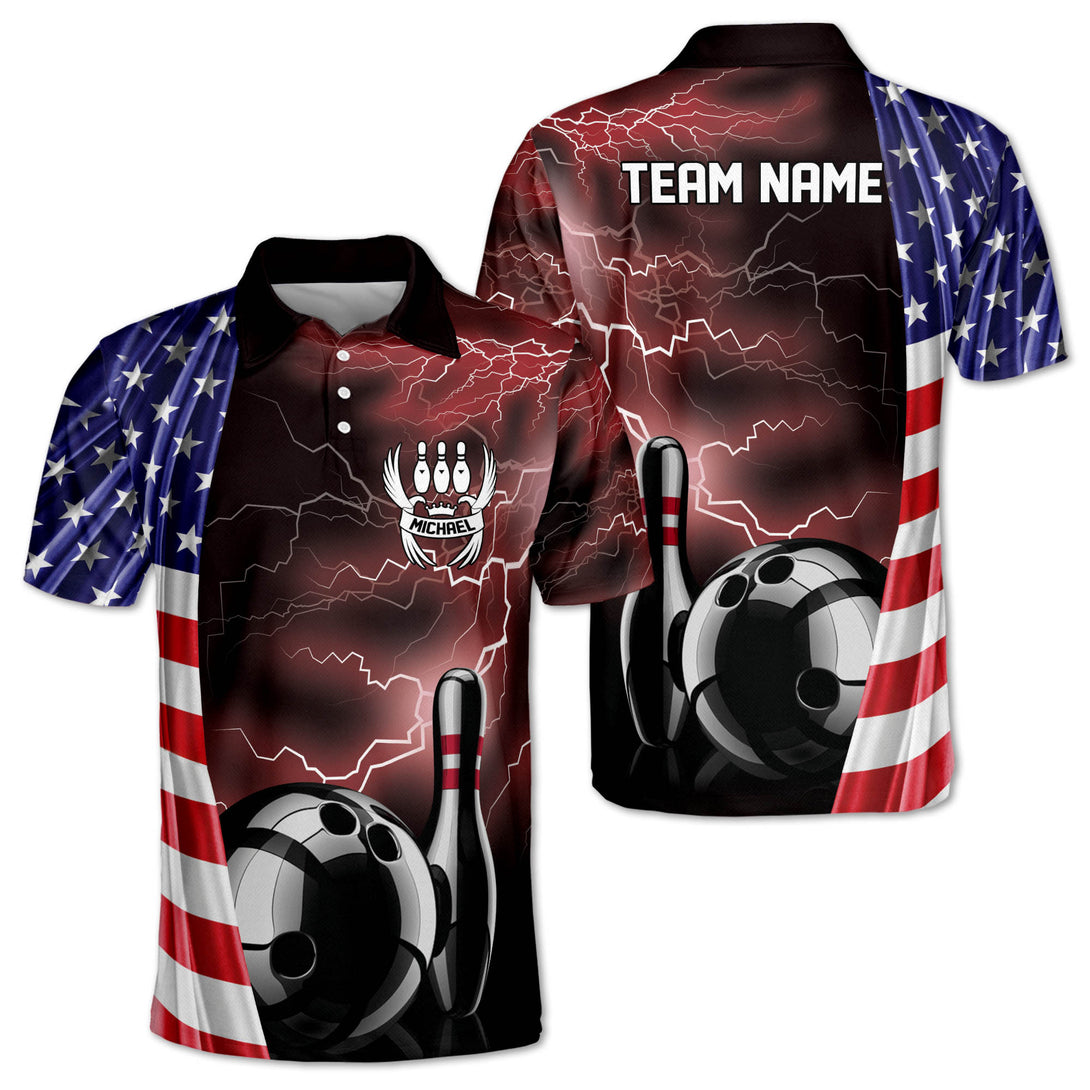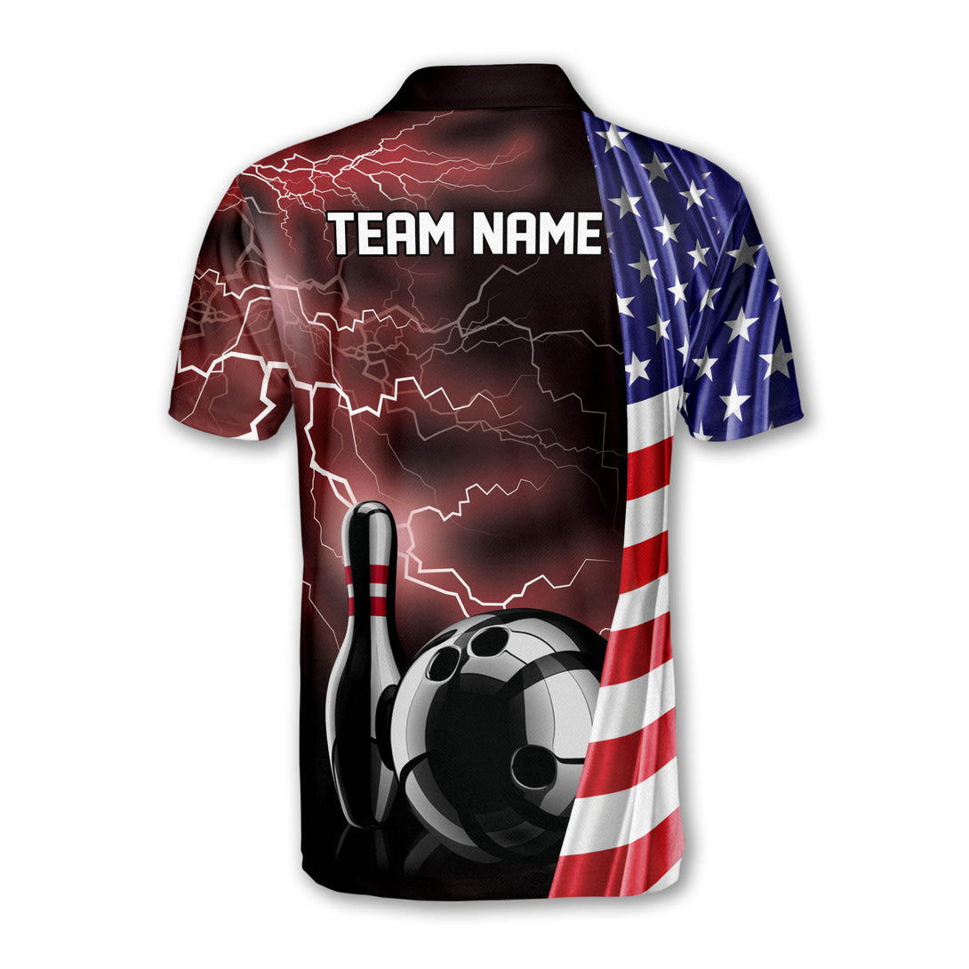 Custom Thunder Patriotic Bowling Polo Shirt For Men, Custom American Flag Bowling Team Shirts BZ0233