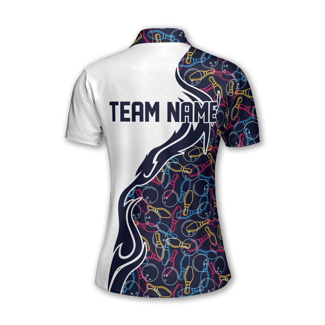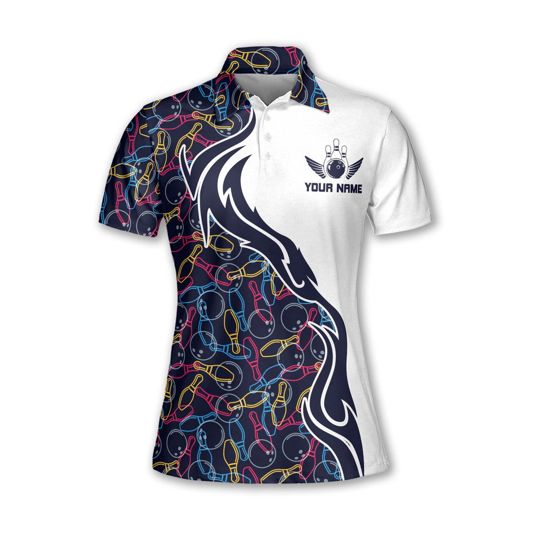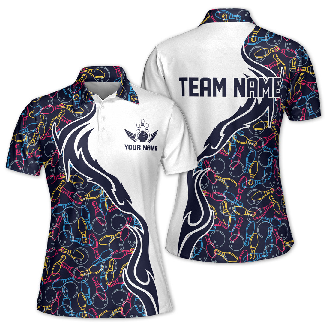Custom Women Bowling Shirt, Custom White And Blue Team Bowling Polo Shirt For Women, Custom Women's Bowling Team Shirts sBZ0034
